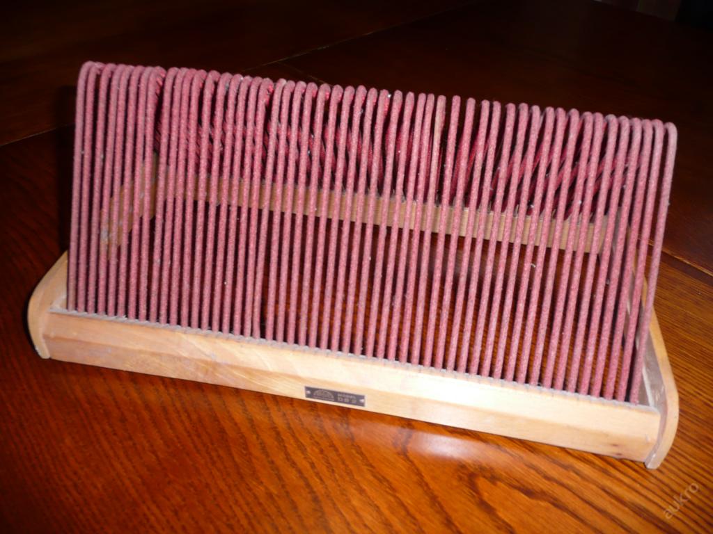 Zdravím,stojánek na desky pamatuji naši ho měli na standartní desky 78 ot.Vypadal jako na obrázku ale neměl ty boční čílka a na spodu byly v krajích těch latěk z tvrdého dřeva gumové malé podložky proti ujetí a ty dráty byly pěkně tvrdé s tím stojankem nešlo moc pohnout, nevím z čeho byly a potaženy byly takovou textilní punčoškou,taky tak byly potaženy v ložnicových skříních kolem šedesátých let /taky jsem je vlastnil/na dveřích držáky na kravaty,rovný drát potažený touto punčoškou a na koncích zahnutý a zakončený držáky na uchycení.Toliko jak jsem to viděl snad to pomůže.Bobess.