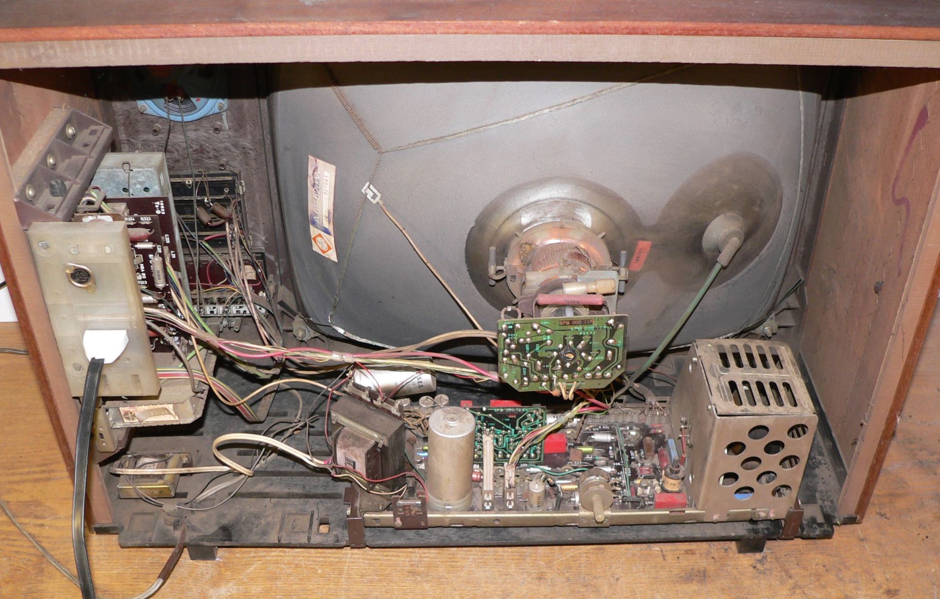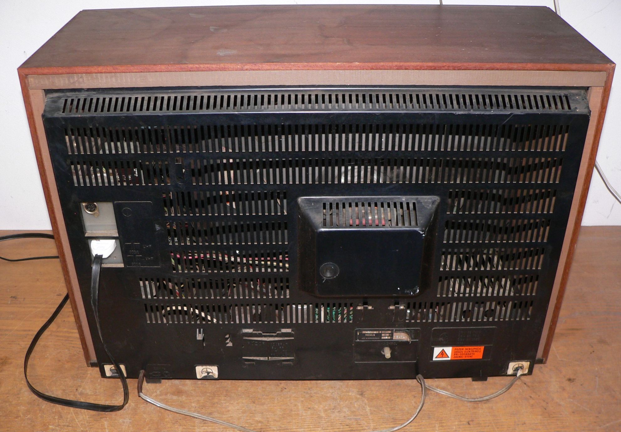 Co se týká tohoto konkrétního kusu, tak jsem v něm již dříve vyměnil dost kondenzátorů, a nějaké budou ještě potřeba - když jsem jí teď naposled pouštěl, tak ač stále spolehlivě a přesvědčivě synchronizuje, je v obraze určitý neklid (šelest) a trochu se prohýbá ve vodorovném směru. Obrazovka je perfektní. Tu jsem tam dříve měnil, původní byla rozbitá. Dárcem bylo jedno torzo Aleše. Zvuk jde perfektně čistě, citlivost taktéž vynikající. Je utržené ovládání jasu - jeho potenciometr, stejně jako některé další, jde velmi ztuha. Bedýnka je taková průměrná, sice se ještě leskne, ale tu a tam je poškrábaná, někde se uloupnula dýha. Nemám ani zadní ani spodní kryt.