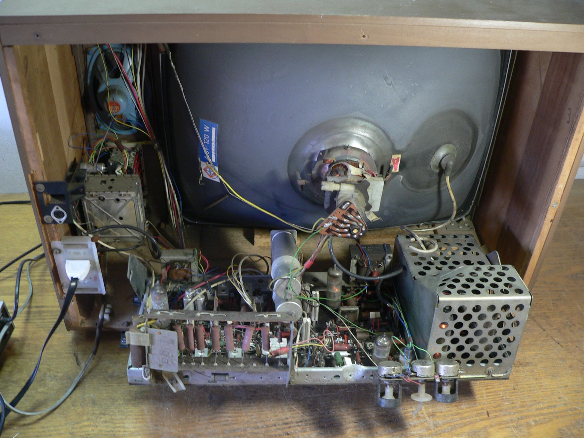 Konkrétně tento kousek je kompletní se všemi kryty a originální síťovou šňůrou, bedýnka má nějaké oděrky (i na plexisklu), ale místy se ještě leskne. Obrazovka dobrá, zvuk vynikající. Horší je to se synchronizací - ve svislé je znát trochu neklid, vodorovná zase prvních 10 minut ujíždí, během této doby je potřeba jí tak 2x přenastavit (bouhžel i mimo rozsah jemného nastavení potenciometrem na zadní stěně. Pod vertikální PCL82 byla měněná vyhořelá patice, a nějaké součástky kolem (maďarské térové kondenzátory v červeném papíře se chovají úplně stejně jako ty české černé...).