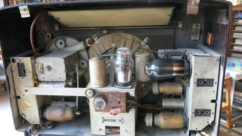 Není mi moc jasné, proč bylo philipsáky zvoleno toto nezvyklé uspořádání, snad úvaha nad možností výměny napájecího bloku za universální (461U s osazením elektronkami řady C - seriové žhavení 0,2A) nebo bateriové (s osazením elektronkami řady K se žhavením 2V). Každopádně mne lákala právě tato konstrukční zajímavost.