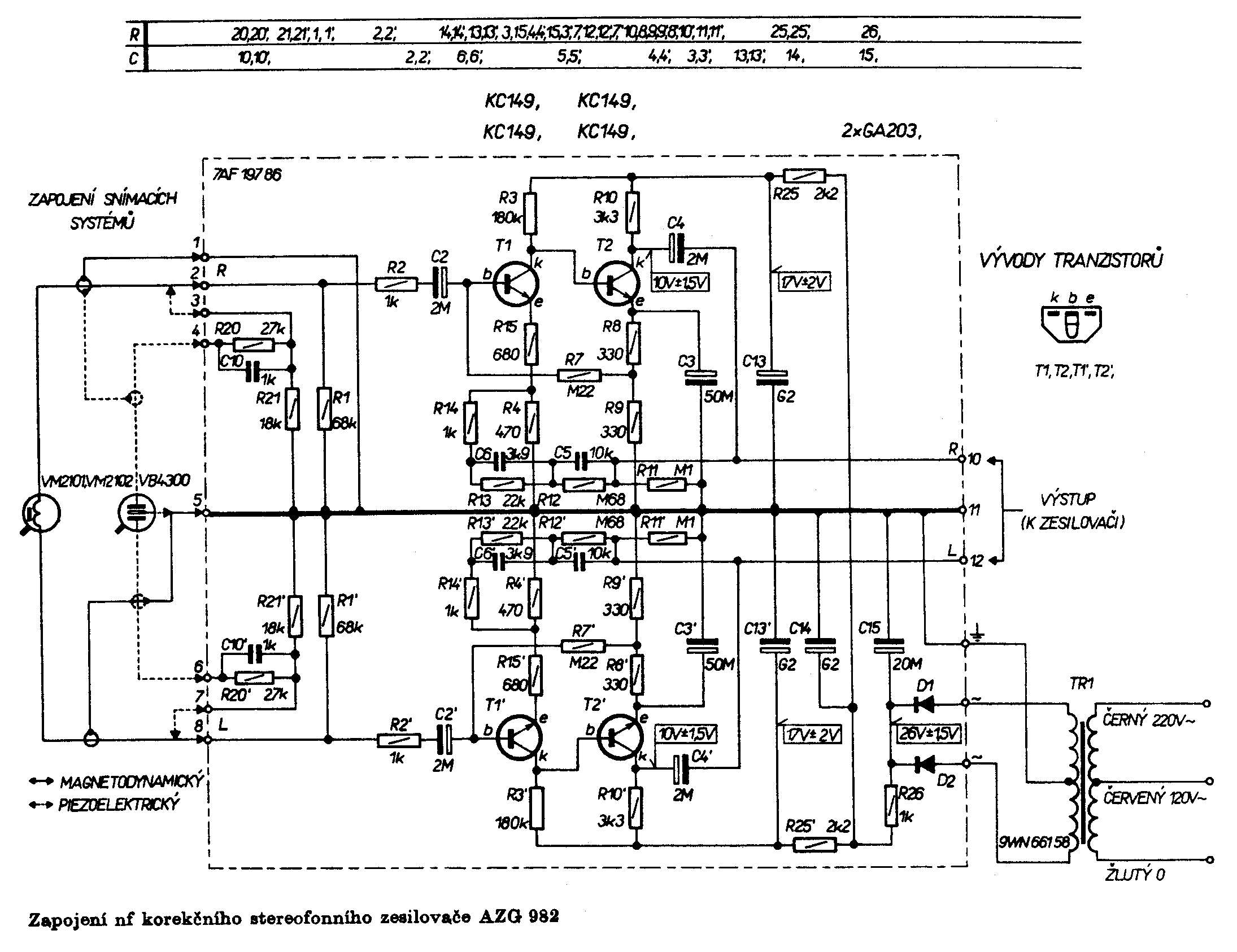 AZG983 je už křemíkový dvoutranzistorový /na kanál/ vestavný předzesilovač pro MM vložky