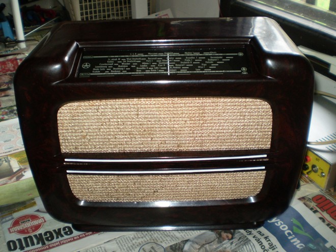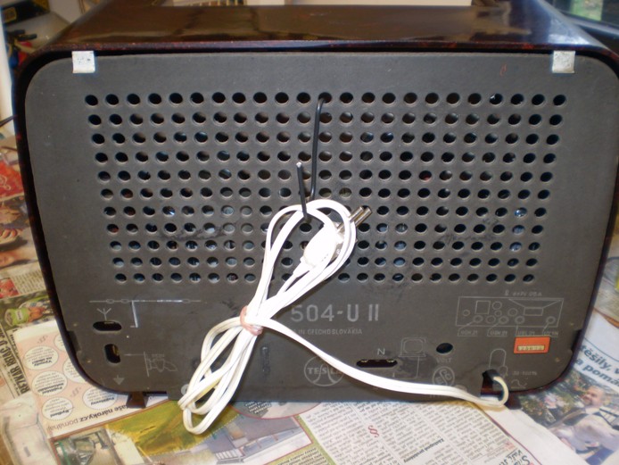 Přikládám pár obrázků, skříň je pěkná, obnoveny bílé linky, epoxidem dolit prasklý knoflík ladění a v zadní stěně