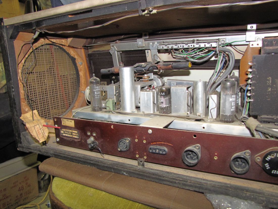 - Osmihranná díra po pravém reproduktoru, bastlíři, který ho vydělal k ničemu nebyl, na "normální" rádio by nehrál.