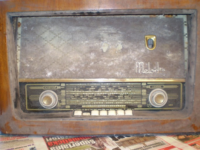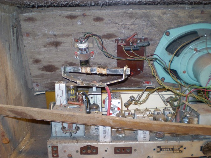 Tesla Melódia . Zatím jsem na něm nenašel nic , co by nevyžadovalo hloubkový zásah , klíh něco sežralo, takže se bedýnka rozpadá , také trošku červotoč, moc rezi, přepínače mechanicky nefungují, ARZ201 sežrán rzí , brokát se sype po napadení plísní, no je to velká výzva, zda se do toho pustit či to celé zahodit . Vyndal jsem zatím trafo a očistil , podle toho , jak to s ním po změření bude vypadat , se rozhodnu co s tím. Kdyby náhodou chtěl někdo prodat kus v lepším stavu , prosím o nabídku .