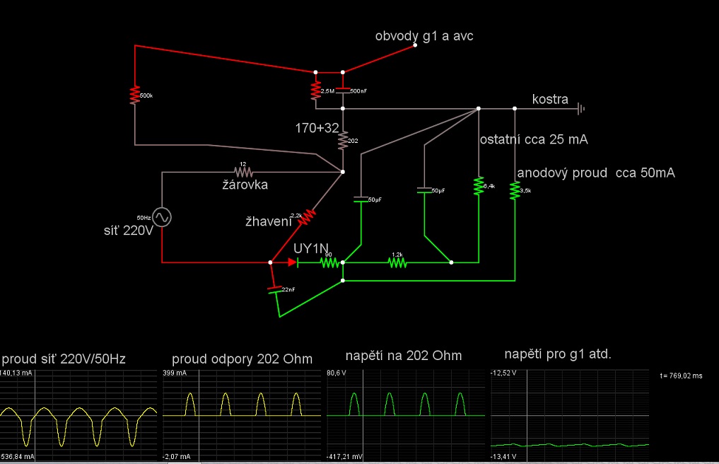 a záporné předpětí pro elektronky a avc je odvozeno ze silně nespojitého napětí na odporech 170+32 Ohmů