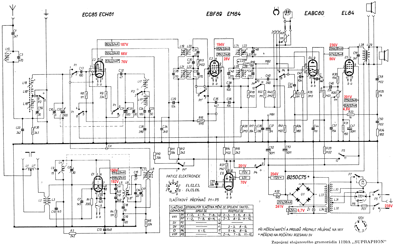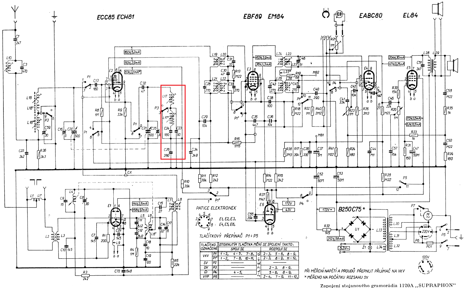 Protože E2 a vše další má fungovat jak pro SV, DV tak i pro VKV a to VKV "nějak hraje" , měla by být vada v obvodech mezi g1 E2 a anténou , pokud funguje oscilátor na SV,DV .Tak třeba zkrat v ladícím kondu, C13 bez kapacity (mf 10,7 přes pár pF proleze , SV,DV moc ne) . Nebo cívky- utržené vývody pod kryty , nějaký zkrat atd. atd. , možností je milion. Nejlepší po kontrole funkce oscilátoru ( stačí na mřížce triody naměřit digitálem přes