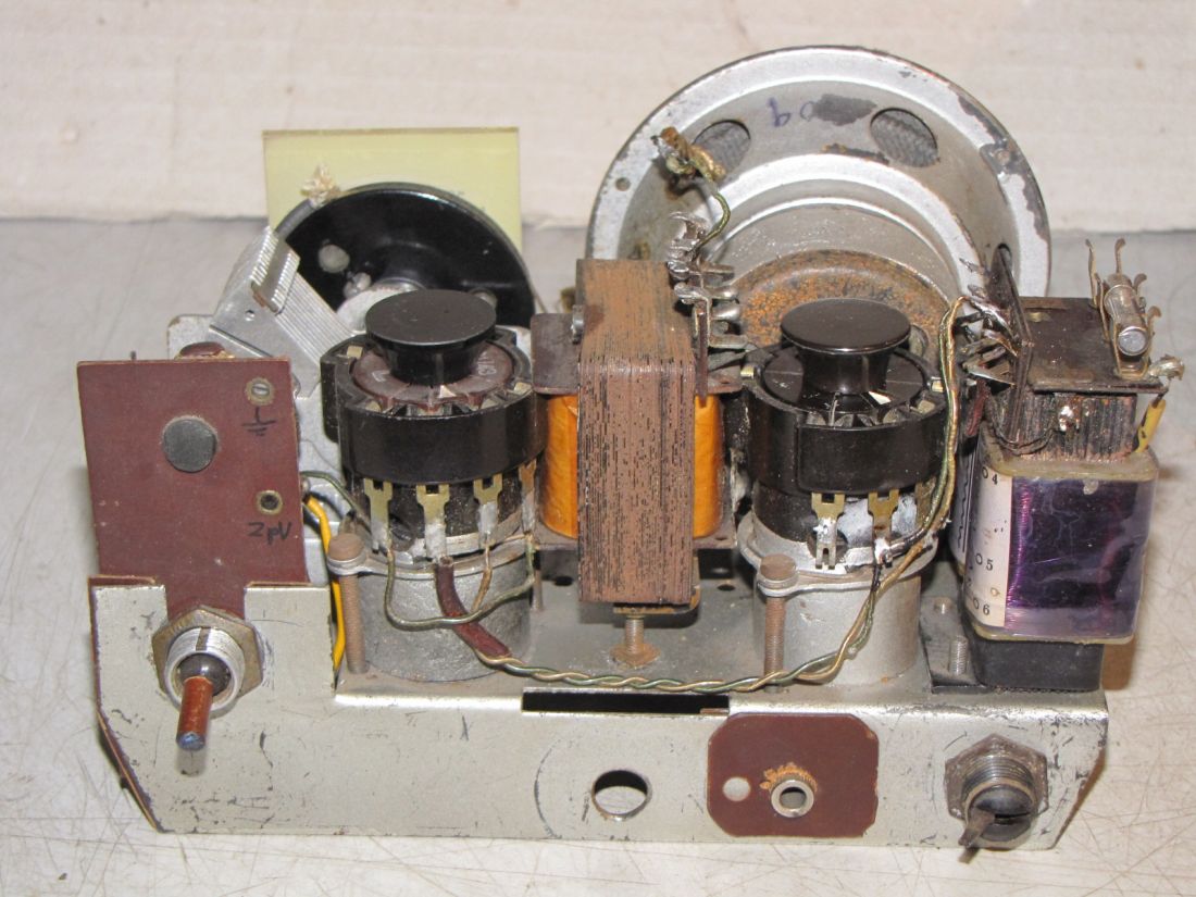 I když je to hrozný bastl, tak to vypadá na klasickou dvoulampovku, jako je třeba Duodyn, jen místo vstupní elky ř. U byla použitá asi RV12P2000. Ladící cívka je pravděpodobně typ SV156, jenže je vypálená "díky" vadnému kondenzátoru v anténní zdířce.