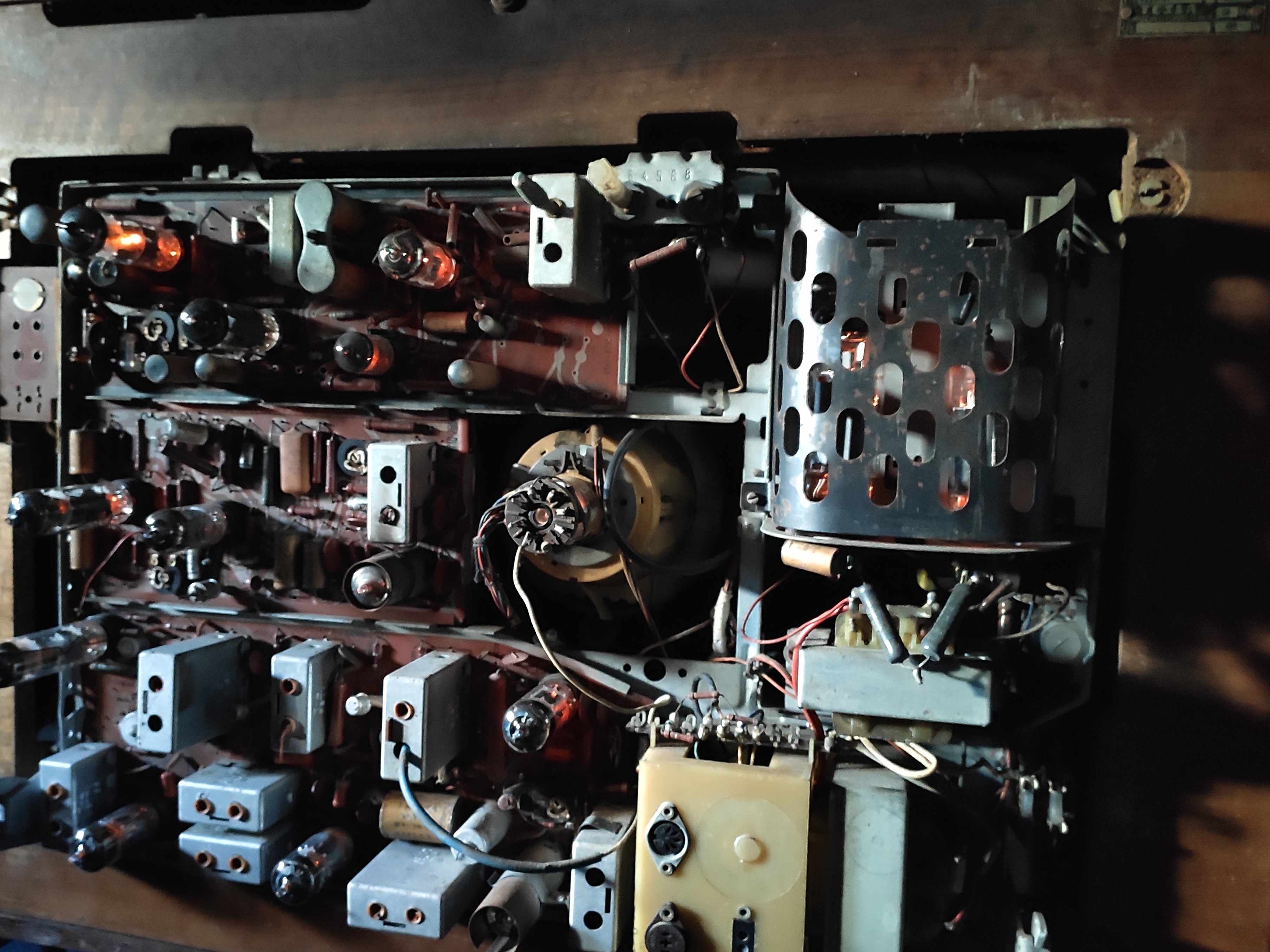 V televisoru bylo několik elektronek Philips. Specielně PCL85, EY86 a obě EF184. Podle stavu zašpinění (zadehtování) tam snad byly už od výroby. Po celou dobu provozování jsem v televisoru žádnou elektronku neměnil.