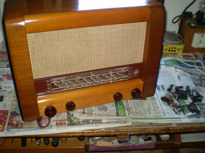 Rádio po větších obtížích s náhony ladění a pásmového ladění po výměně unavených pérek a pružin , lanek, promaštěných šňůrek a řady kondenzátorů a odporů je funkční. Zajímavá vada byla porušená izolace katoda /žhavení