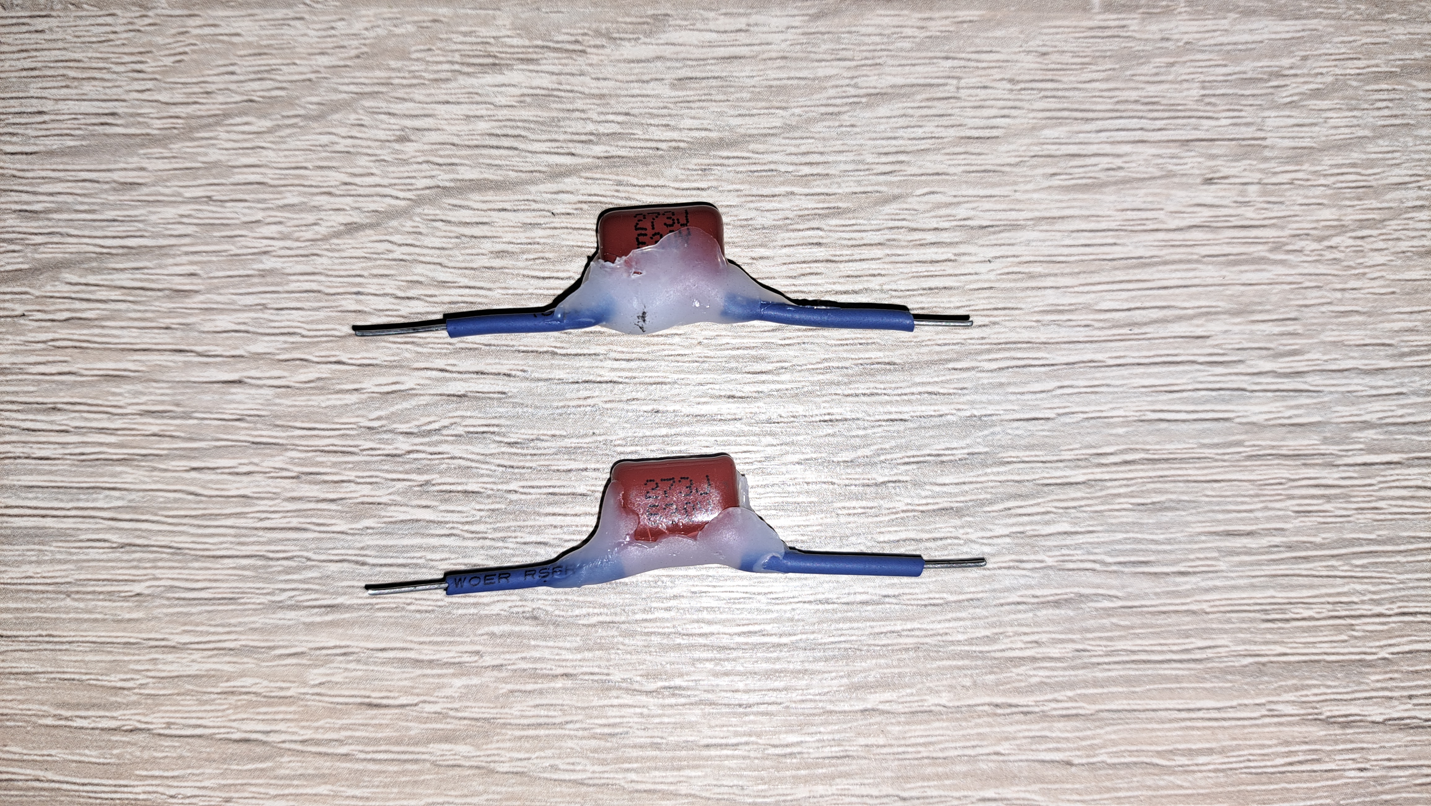 Nemám ich ako zmerať väčším napätím, mám dostupných len 12VDC, alebo 230VAC. Keď som ich vybral tak jeden mal 33nF a druhý 34nF. Odpor rástol zo 6 MOhm a nakoniec ukázalo nekonečno. Aj tak som ich vymenil, namiesto Al fólie som použil Cu.