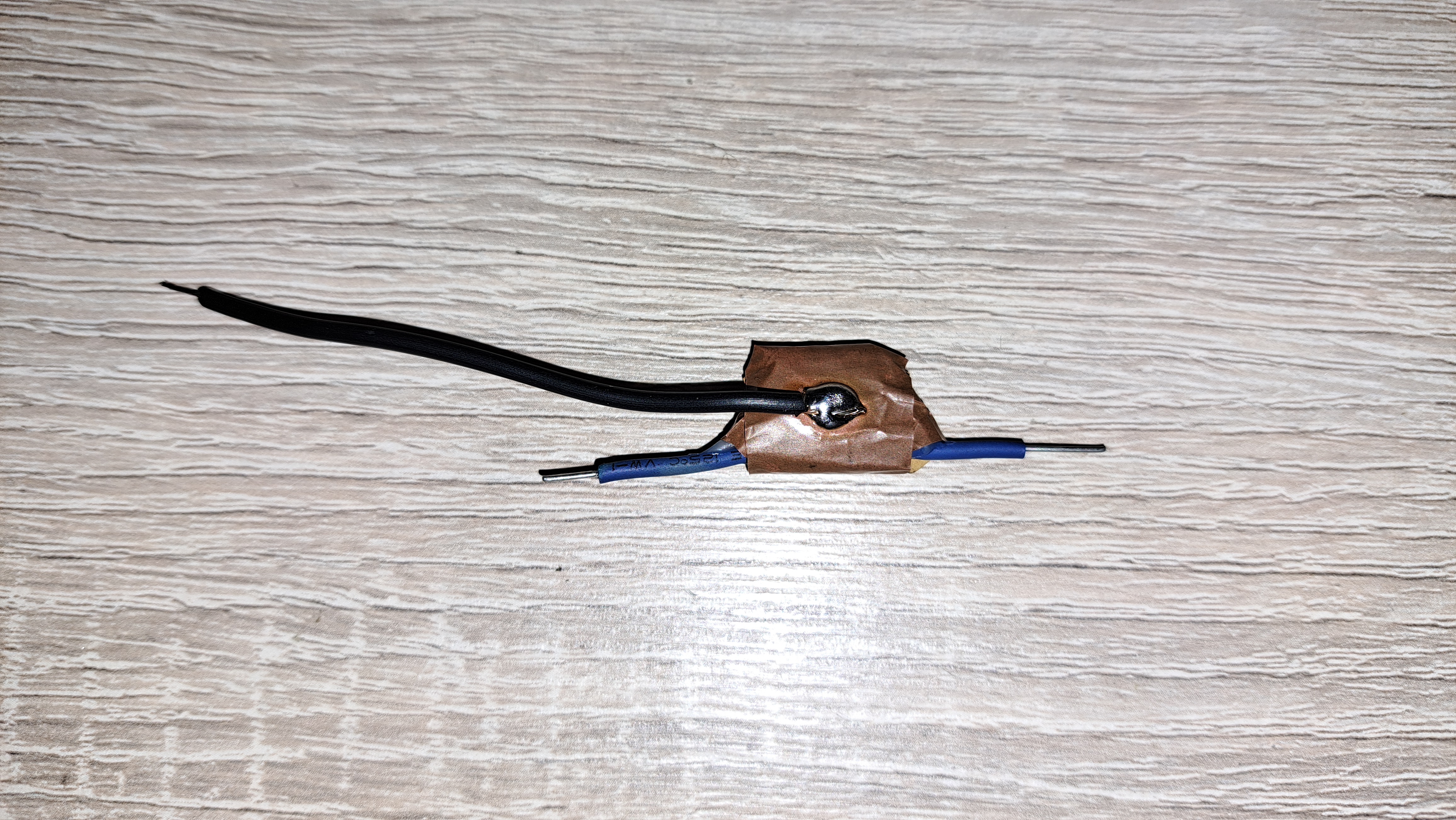 pocínovaného ( nezoxidovaného) slabého Cu vodiče + smršťovací bužírka .