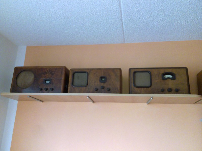 Má to ale dva háčky, jednak to má v paneláku, čili do vyvrtaného panelu se dá dát tyč a kolem ní chemická kotva bez jakéhokoli strachu že se to celé vytrhne s kusem zdi, ale tím největším zádrhelem je že takovéto regály jsou napevno, bez možnosti jejich přestavění. Takže bych byl nucen rádia řadit podle velikosti a né podle značek a časové chronologie tak jak si to představuji.