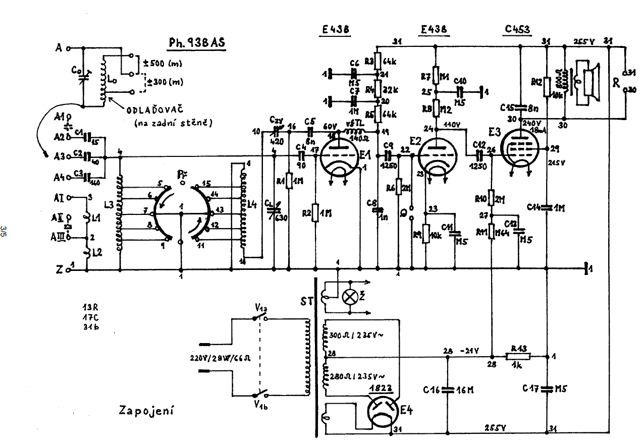 CHYBA ! Opravuji včerejší zprávu . Philips 938AS je přímozesilující tříelektronkový přijímač . Elektronky nejsou žhaveny do serie , ale paralelně čtyřmi Volty ze síťového trafa . Žhavící proud se tedy sčítá .