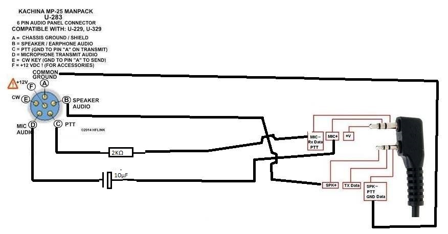 Vyrobil jsem přechodku z vojenského konektoru U-283 na kenwood pomocí tohoto schématu: