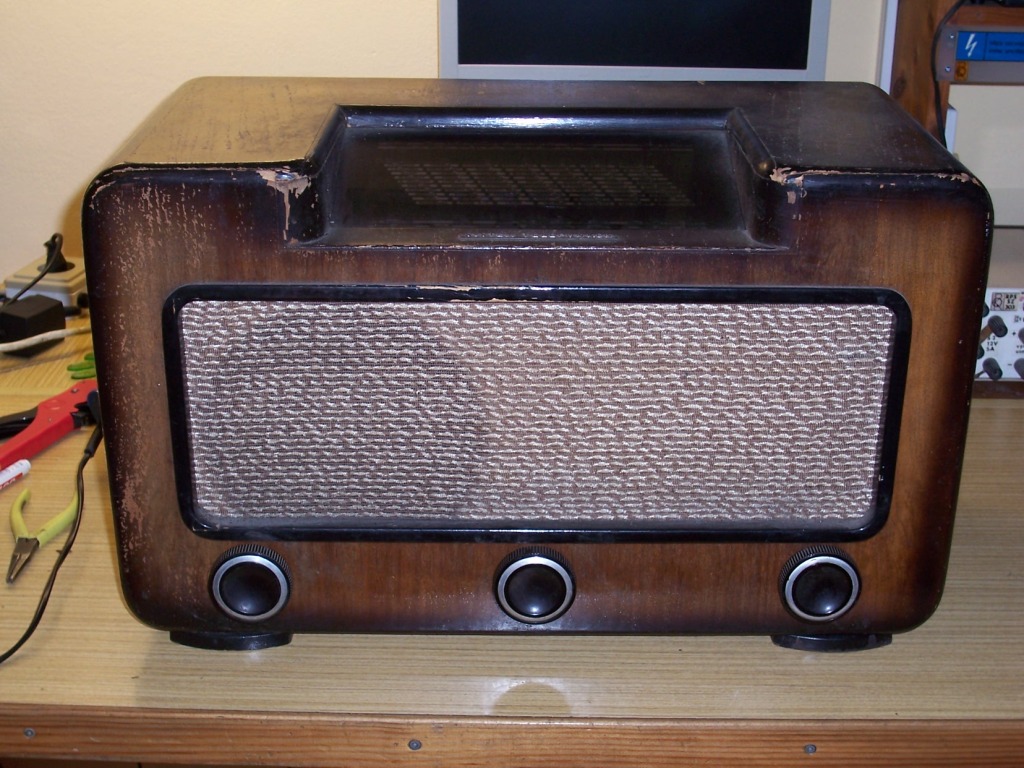 Tohle rádio jsem měl pořád odložené, že se na ně jednou podívám. Ani už nevím, kde se vzalo. Lak je celý popraskaný a místy oloupaný, do toho se mi teda nechce vůbec. Co jsem se tak dočetl, vypadalo to celkově dost nejistě.