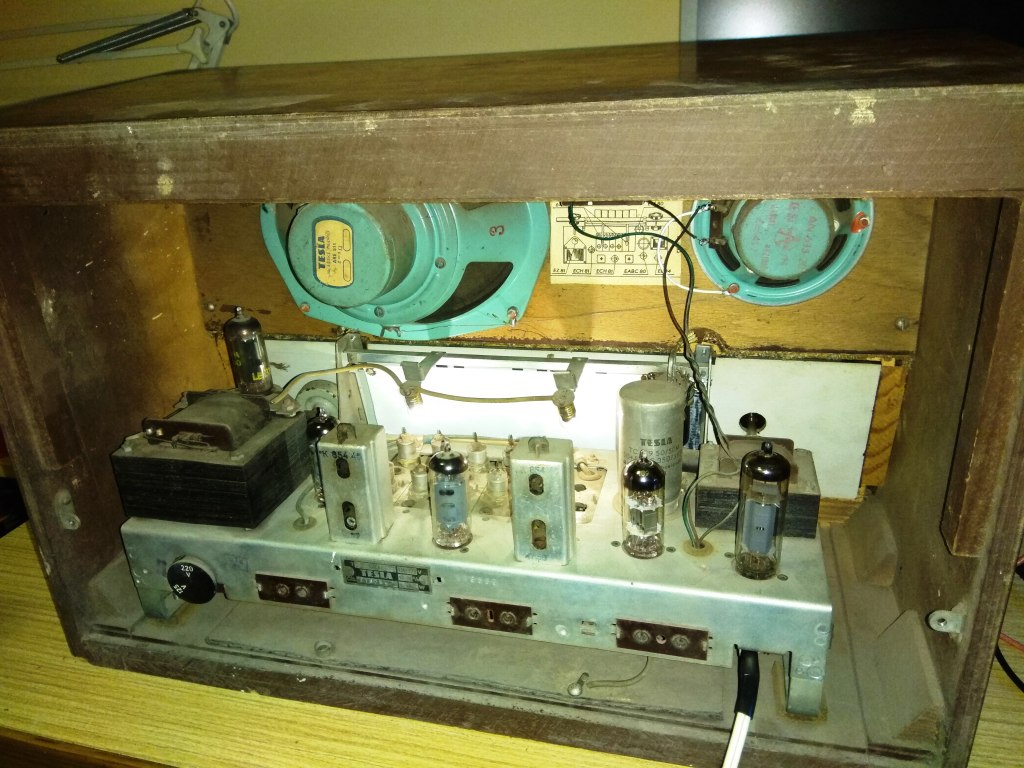 Po pročištění a zapnutí to nějaký zvuk vydávalo, ale ke kvalitě a výkonu měl daleko a ani návrat k EL84 nepřinesl výraznou změnu. Po pracovní době tam věčnost trávit nešlo, tak jsem pokračoval později doma.