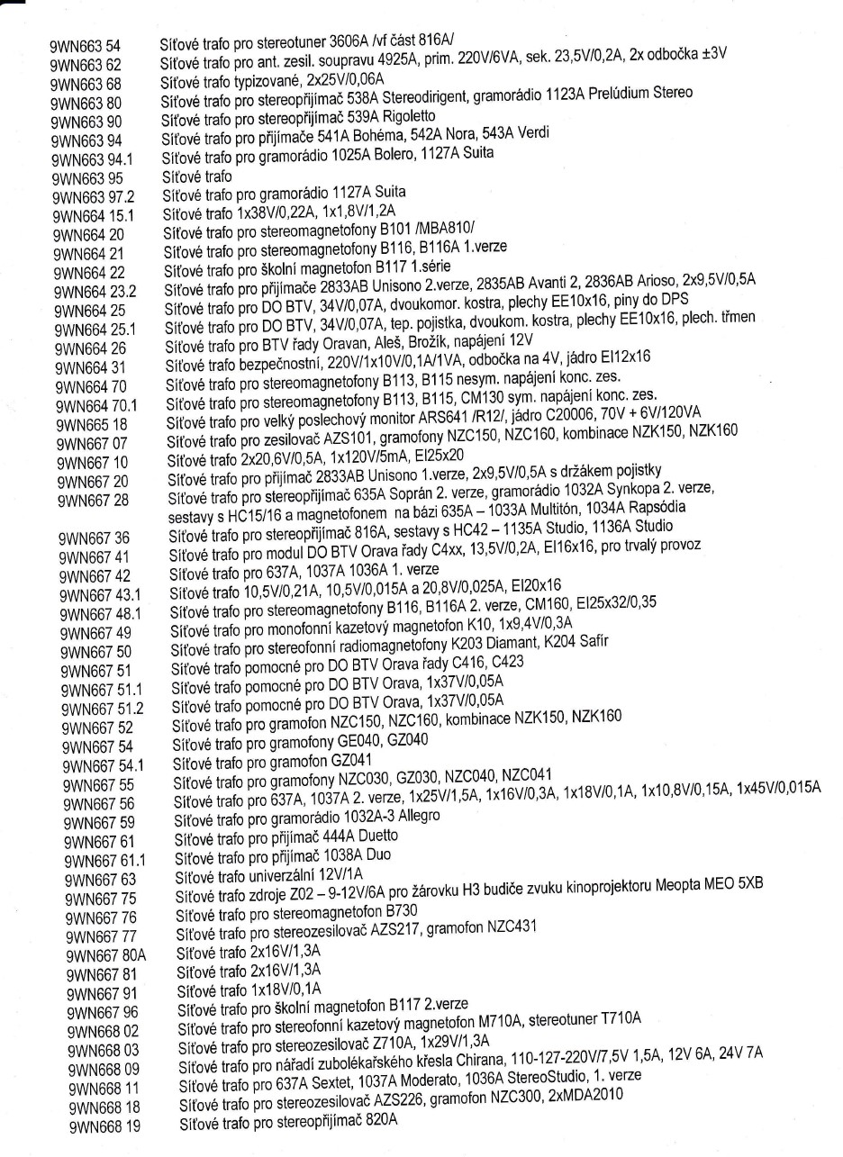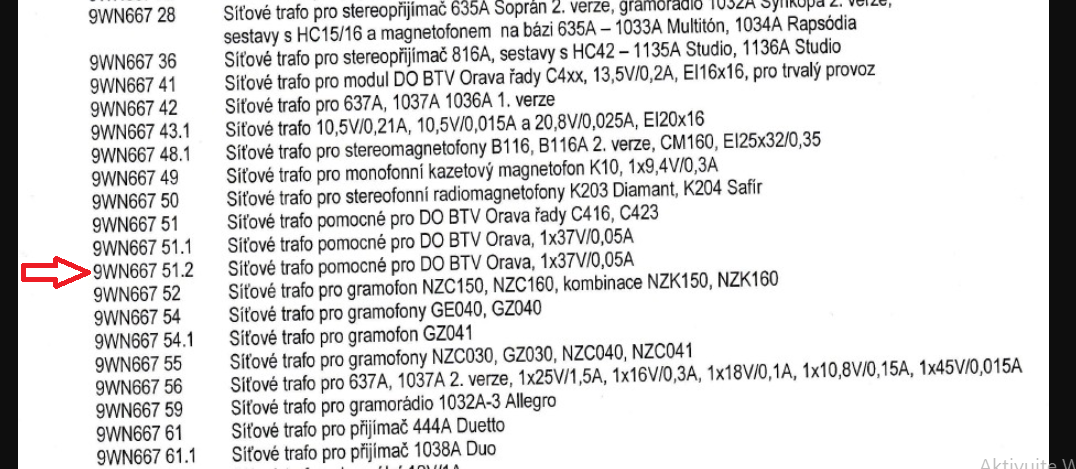 A Vašku, prošel jsi ty tabulky opravdu pořádně? Vždyť to tam máš: 9WN667 51.2 síťové trafo pomocné pro DO BTV Orava