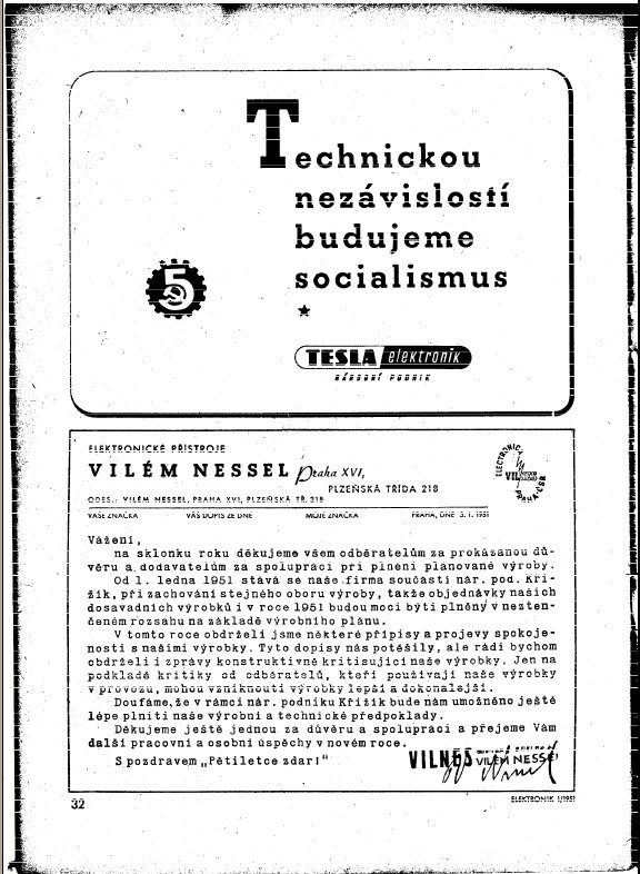 při listování historickými sešity časopisu Elektronik z roku 1951 (dříve Radioamatér) jsem neodolal a naskenoval jsem jednu stranu inzerce z ledna 1951. Horní inzerát vzbuzuje úsměv, spodní inzerát nutí k zamyšlení, jak by se asi vyvíjela elektronika v ČSR, kdyby nebylo únoru 1948...
