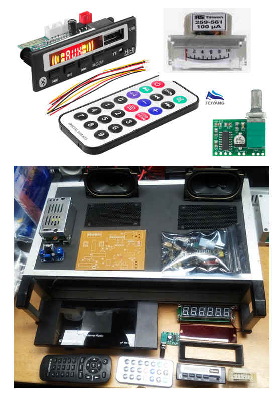 Na DV som pripravil stavebnicu, rovnaké sú aj na tri vysielače SV.(jeden z nich je rádio Dismuke a karta má obsah Synkopický orchester a Františka Krištofa Veselého) Srdce je Internetový tuner Albrecht DR 460C a MP3 prehrávač s FM rádiom dokonca s bluetooth 5.Mp3 má kapacitu 32GB. Mini almes skrinka s výškou 70mm stála pár chechtákov. Rámik s červeným fitrom je výpredajový tovar z GME a presne sadne na 6-miestny displej. Použitý zdroj 12V/1A+5v s LM 317.Na odposluch kúpené malé reproduktorky aj s perforovanou mriežkou, tiež stáli iba pár chlpov. poháňa ich 2x3W -D zosilňovač, na meranie hĺbky modulácie je použitý maličký japonský uA. To čo tam pribudne je kompresor dynamiky s obvodom SSM 2166P. Na nostalgy rádio Luxembourg je pripravený iný kaliber. Tam už je hotový model TH 5.0, takže som sa zameral na prehrávač a jeho vlastnosti. To čo pripomína trochu Laxík je stanica Hits Radio the 50s, 60s Hits´. Šlape to v MP3 128Kbps.je to niekde zo štátu Washington, mesto Washington.Čo sa týka nahrávok priamo z vinylov to práve chcem previesť do formátu WAV. na tú kapacitu je to 2133 skladieb. .Či mi to budete veriť alebo nie , odskúšal som si to cez PC, starý winamp vysielač TH5 naladený na 1440kHz, tuner Technics, polský zosilňovač,WS440 a equalizér Siemens 9-pásmový a štvorpásmové bedne ILA. prehrával som od R.Stewarta Stay with Me. raz cez WAV a potom Mp3 44.1kHz Potom bol posluch na prijímači Stradivari 3 a Variace, rozdiel bol badateľný napriek tomu že to boli stredné vlny.