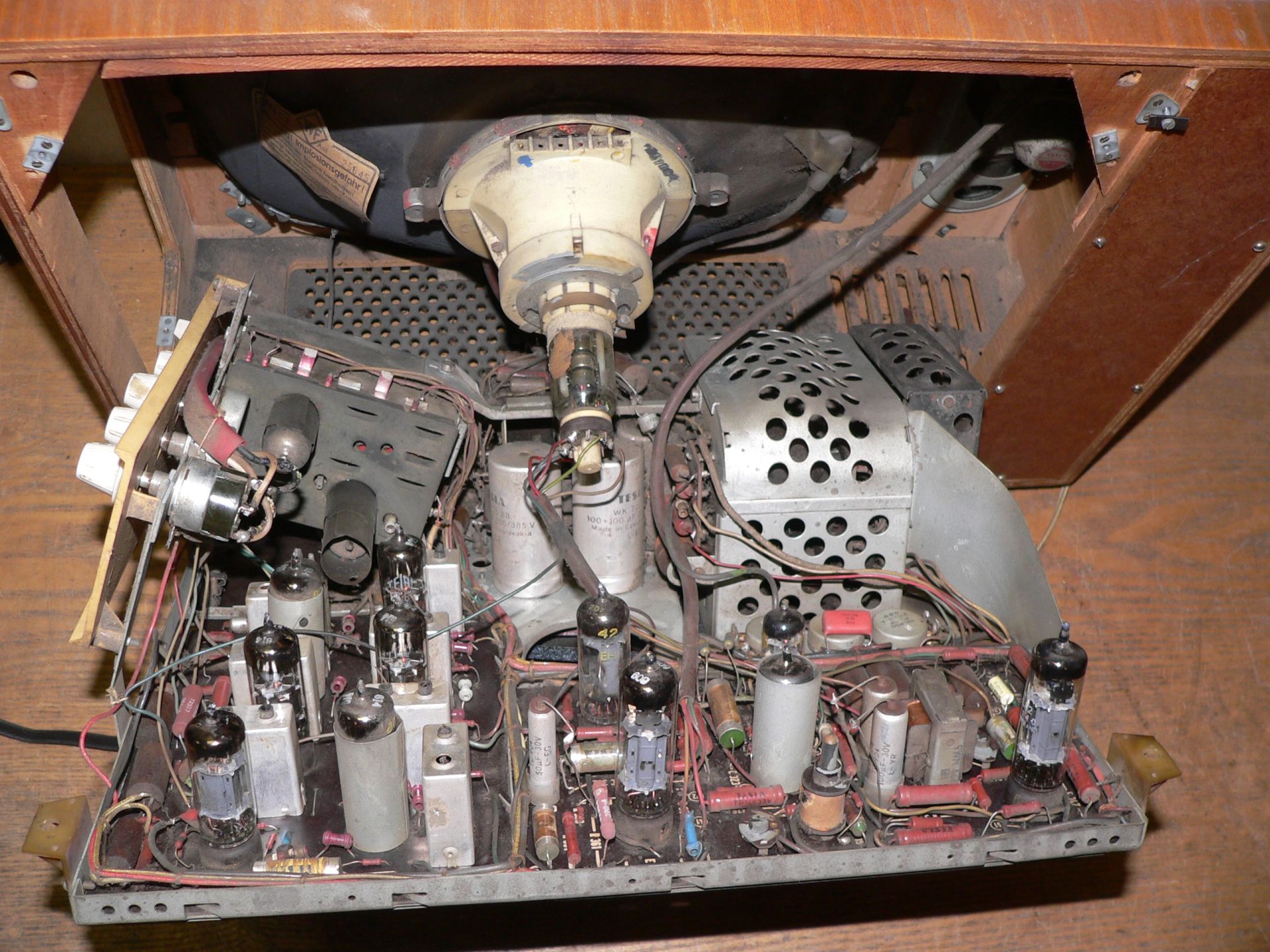 Teď dávám pryč ruského TEMPA 6. Na ruských televizích se mi jako klukovi-bastlířovi líbilo, že na všechno psali krom obligátního "Sdelano B CCCP" tay datum výroby. Takže při rozebírání jsem z elektronek a kondenátorů hned věděl jak je to staré. Naopak tragédií byly tyhle jejich plošné spoje. S nimi jsem přišel do styku, když jsem k vánocům od rodičů dostal ruskou stavebnici přímozesilujícího rádia (už nevím jak se to jmenovalo). Její součástí byly tři tišťáky (přijímač, předzesilovač a koncový zesilovač). Celé to bylo takové humpolácké a jak jsem psal, plošné spoje, jejichž vlastnosti a specifický pach si pamatuji dodnes. Ale zpátky k TEMPu. Tenhle je konkrétně cca z roku 1963, bedýnka se leskne, je kompletní, ale lak je popraskaný. Mezi ochranným sklem a obrazovkou je moucha, tlačítka potřebuji rozhýbat. Zvuk mimo obraz, nelinearita (výměna svitků bude doprovázena právě tím odlepováním spojů).
