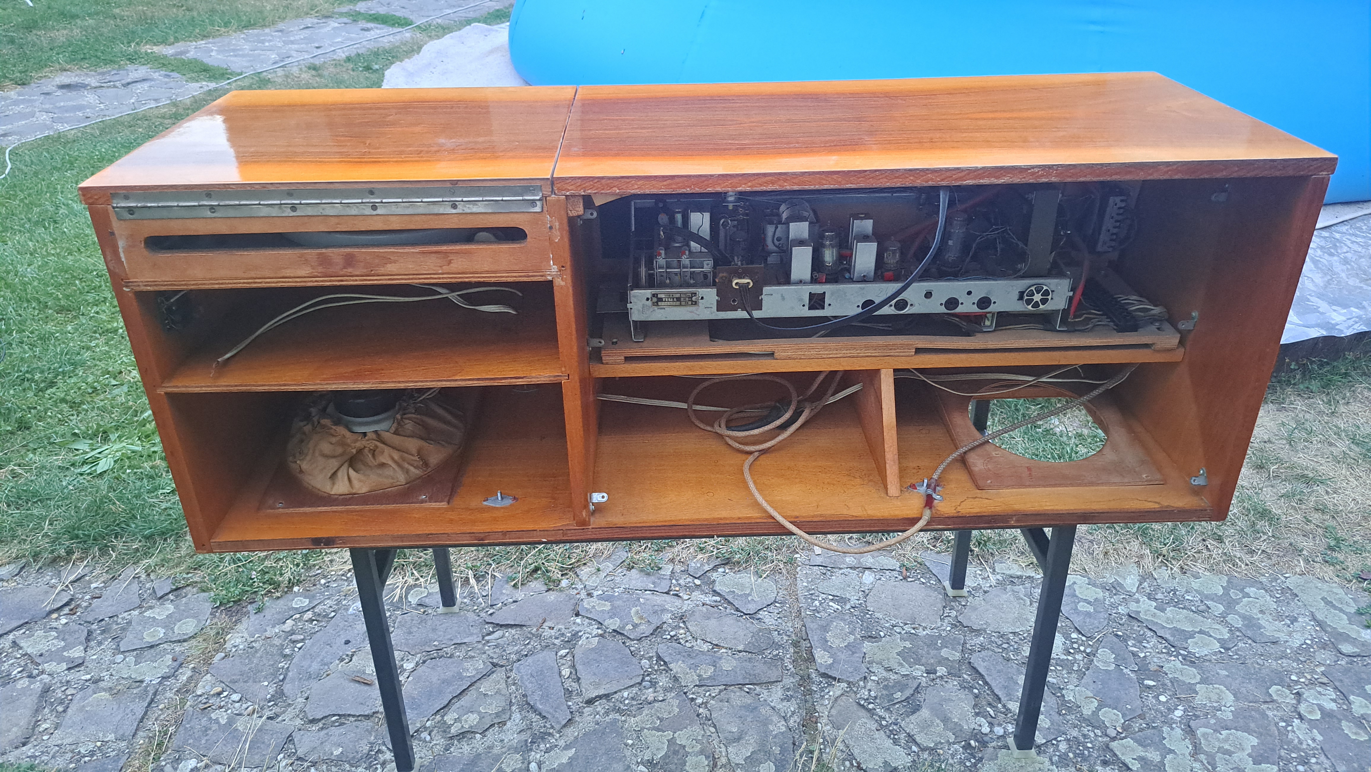 Rádio som včera zapol bez kondenzátora C213 pretože sa jeden jeho vývod hýbal v DPS, tak som ho vybral (spoje na DPS okolo koncovej elektrónky sú zrejme vplyvom tepla povolené) a po chvíli začalo pískať. Po prispájovaní tieniaceho krytu na koncovej elektrónke pre pravý kanál pískanie prestalo, tento tieniaci kryt tam už pôvodne bol. Ľavý kanál začne pískať do pár sekúnd po zapnutí, no na tejto elektrónke tieniaci kryt nebol a káble k reproduktoru boli pôvodne odstrihnuté a ľavé repro chýbalo. Skúsim na tú EL86 pre ľavý kanál doplniť tienenie.