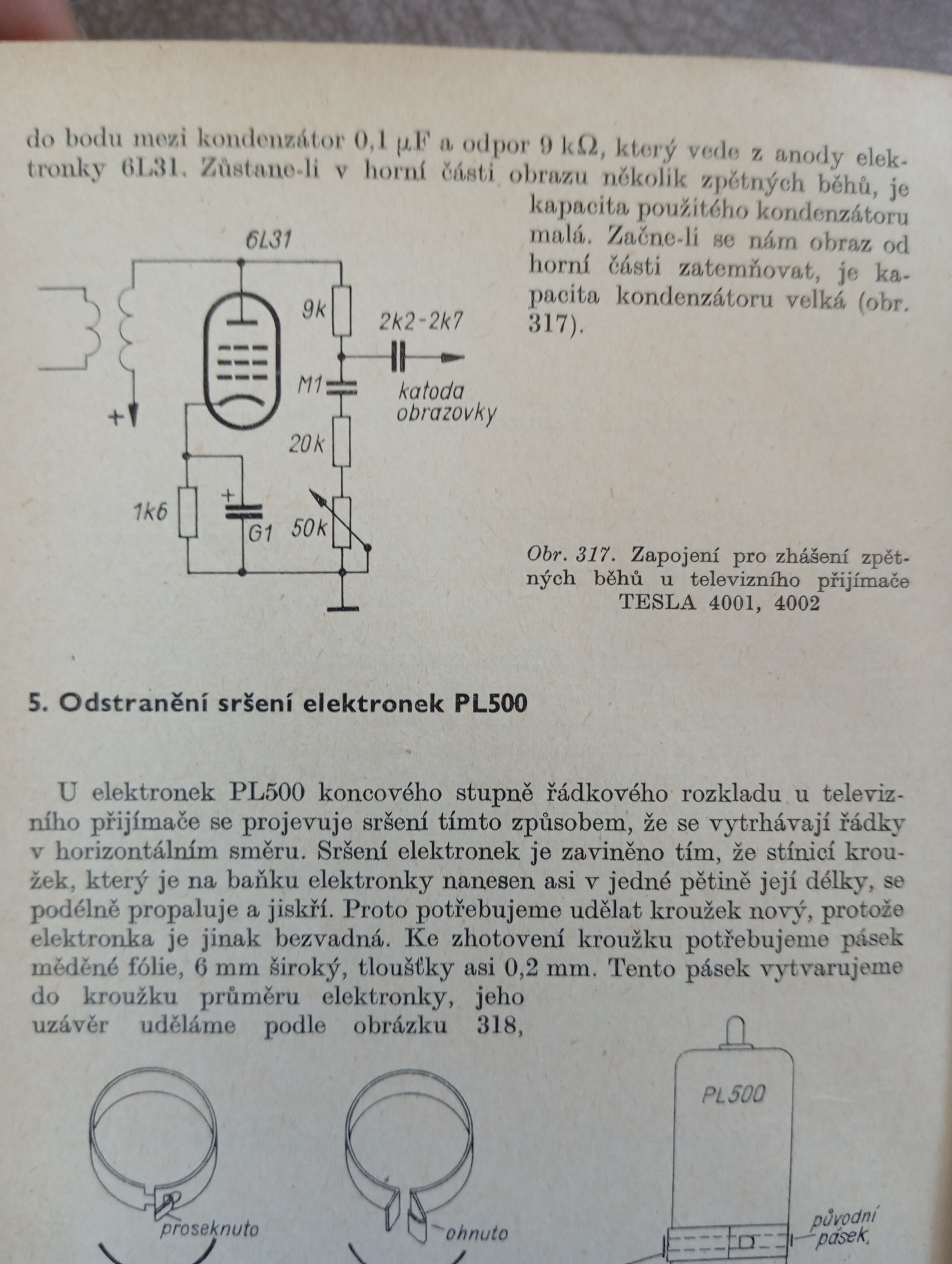 Možno čo je tam trocha rušivé sú tie spätné behy, aj so zníženým jasom, skúšal som zameniť 6Z31 s dosť čiernym getrom za "striebornejšiu" z "darcovskej" telky (ano, kiež bych tak mal tester elektroniek). Ale podľa tejto dobovej reportáže ich tam majú tiež, aj na nižší jas. Asi je to vlastnosť.