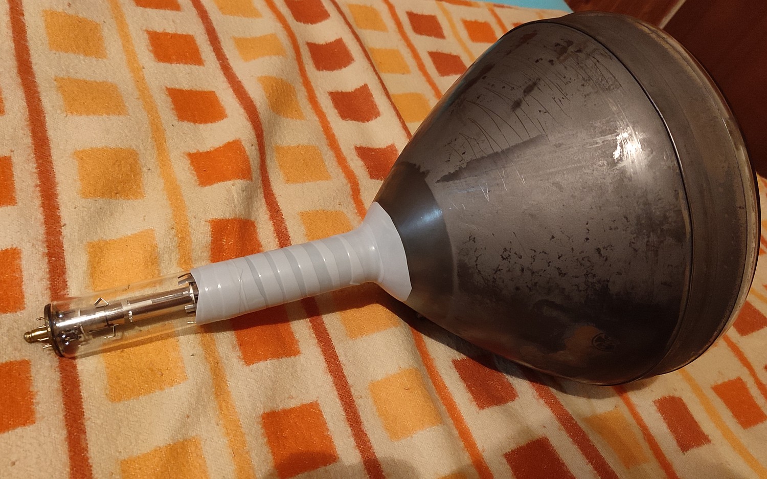 Dokonca sa jednalo o telku do ktorej už bol dobastlený kanálový volič, takže som predpokladal dlhší nájazd - no a nie, táto náhradná obrazovka má dokonca má lepší jas jak pôvodná, ktorá pochádzala z vizualne "zachovalejšej" telky, kde bol akurát tak ten dvojlampový predzosilovač 4901.