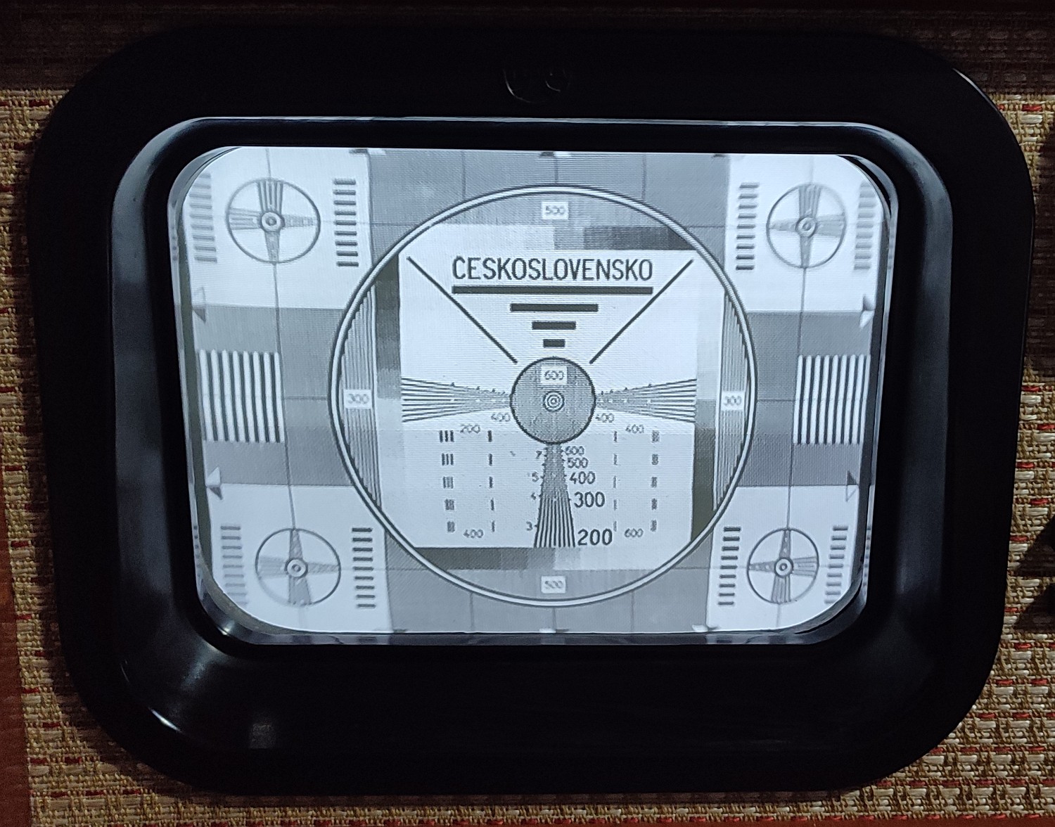 No a už išiel aj naštelovať obraz. Z prenosného DVDčka s dosť amatérsky nahranými monoskopmi a 1kHz piskotom sa u niektorých obrazcov dostáva brum "videa" do zvuku, u iných zase nie. Neviem, či je to zladením VF/OMF, keďže sa mi to obdobne správalo aj pri zapojení videosignálu napriamo do katody E6 a audiosignálu cez oddelovací kondík na poťák hlasitosti, a ako píšem, nepovažujem sa za experta do starej televiznej techniky. Teší ma, že to vie fungovať na Terru, že tam tie extra vstupy netreba, regulerne video sa pozerať dá.