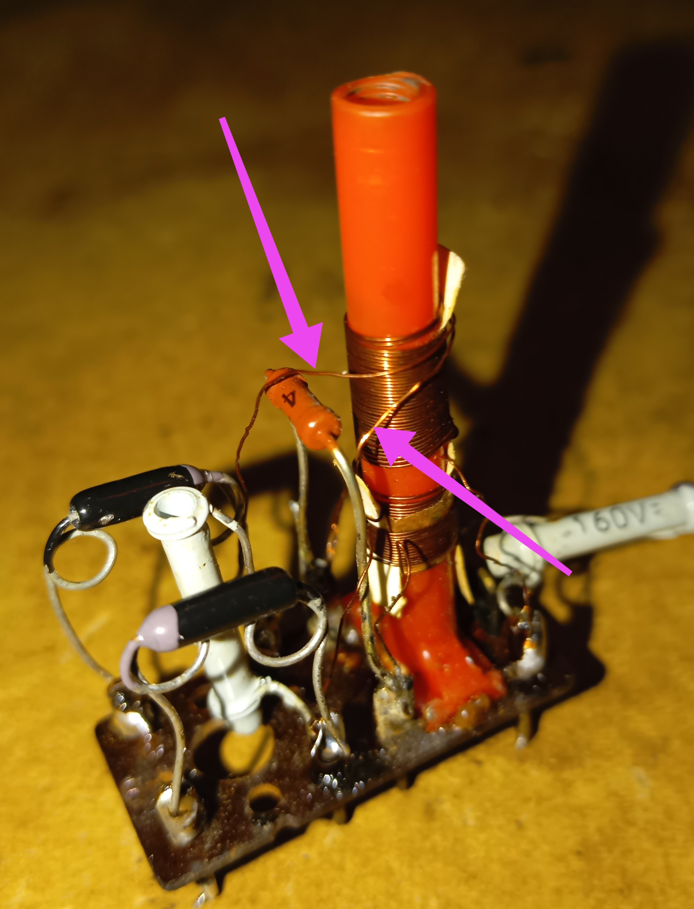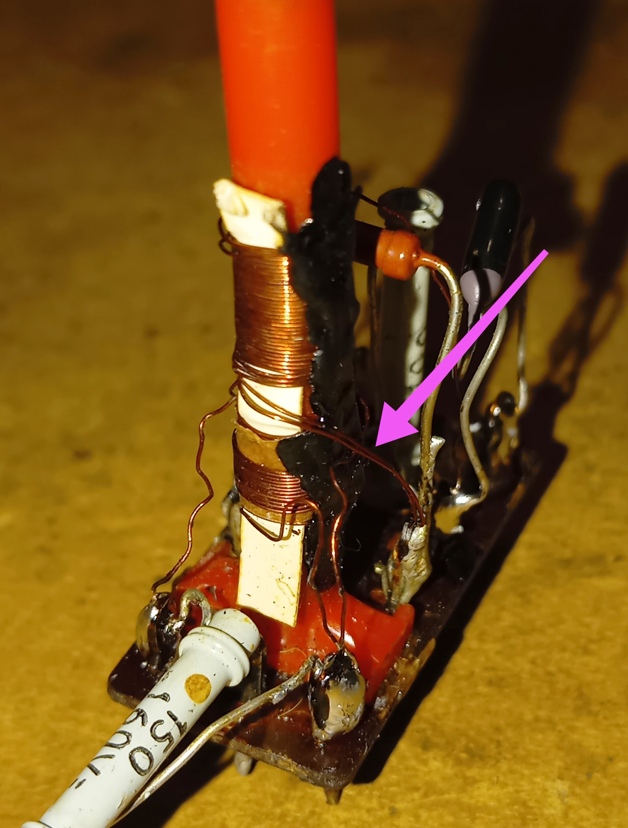 První problém bylo vn trafo. Zde už je novější trafo s označením 6PN35010 a vn cívka se klasicky přehřívala. Nahradil jsem ji nové navinutou cívkou. Trafo poskytuje vyšší VN, v mém případě 17 kV.