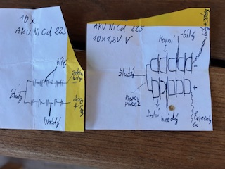 Původní baterie skončila v niklokadmiovém nebi a schema zapojení baterií, které zanechal minulý uživatel mi moc nesedí.