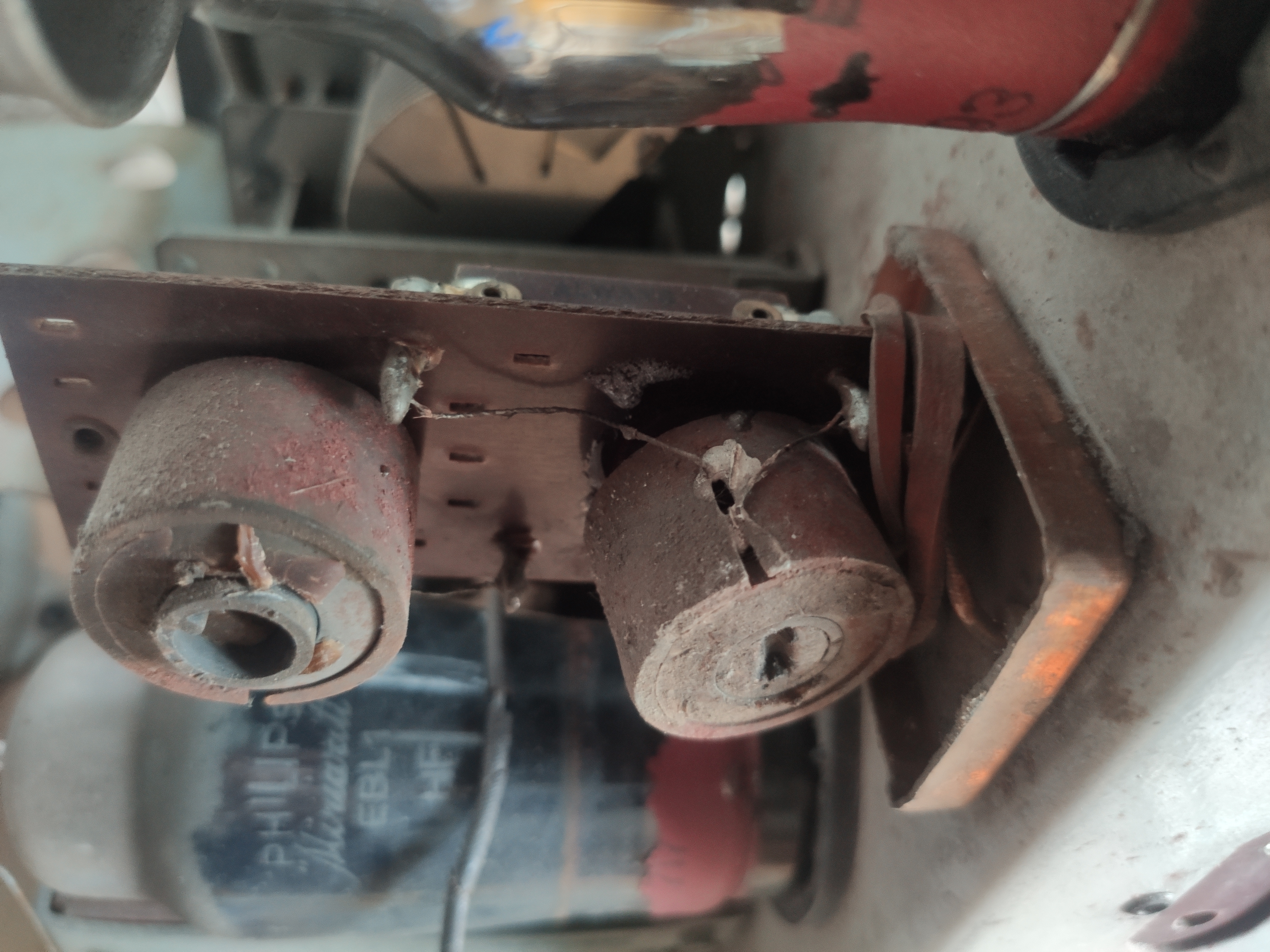 Ta cívka vypadá spíš vylomená než křivě přilepená. Vliv to samozřejmě mít může, ale nikoliv zásadní. Vidím tam hlavně silnou korozi, rádio bylo zřejmě skladováno dlouhou dobu někde ve vlhku. V takovém případě mohlo dojít i nevratné degradaci všech cívek. Zaměřil bych se i na všechny kondenzátory a rezistory, podle mých zkušeností tohle skladování nepřežívají. Paralelní kondy mf filtrech budou nejspíše úplně chcíplé. Je nutné vyčistit i všechny mechanické kontakty (vlnový přepínač a sokly elektronek). Nedají se vyloučit ani slabé elektronky, na dálku se vlastně nedá vyloučit vůbec nic. Přeji ti hodně štěstí.