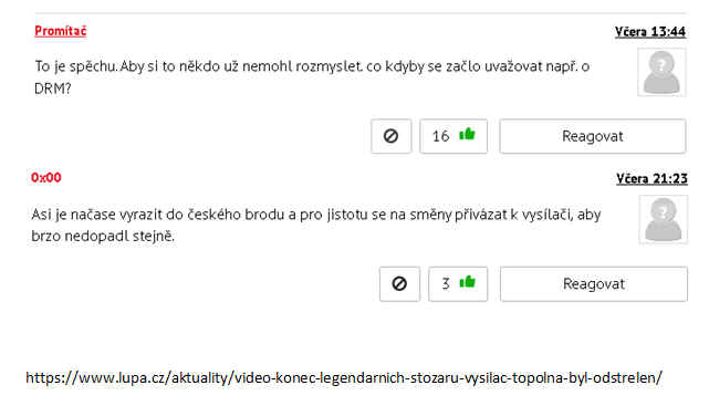 Vůbec bych se nedivil, kdyby prodej areálu vysílače byl již předjednáván s nějakým developerem či spekulantem. Ten spěch a utajování tomu nasvědčuje. Myslím, že by konečně měli povolit střílet nejenom přemnoženou zvěř, ale i lidi....