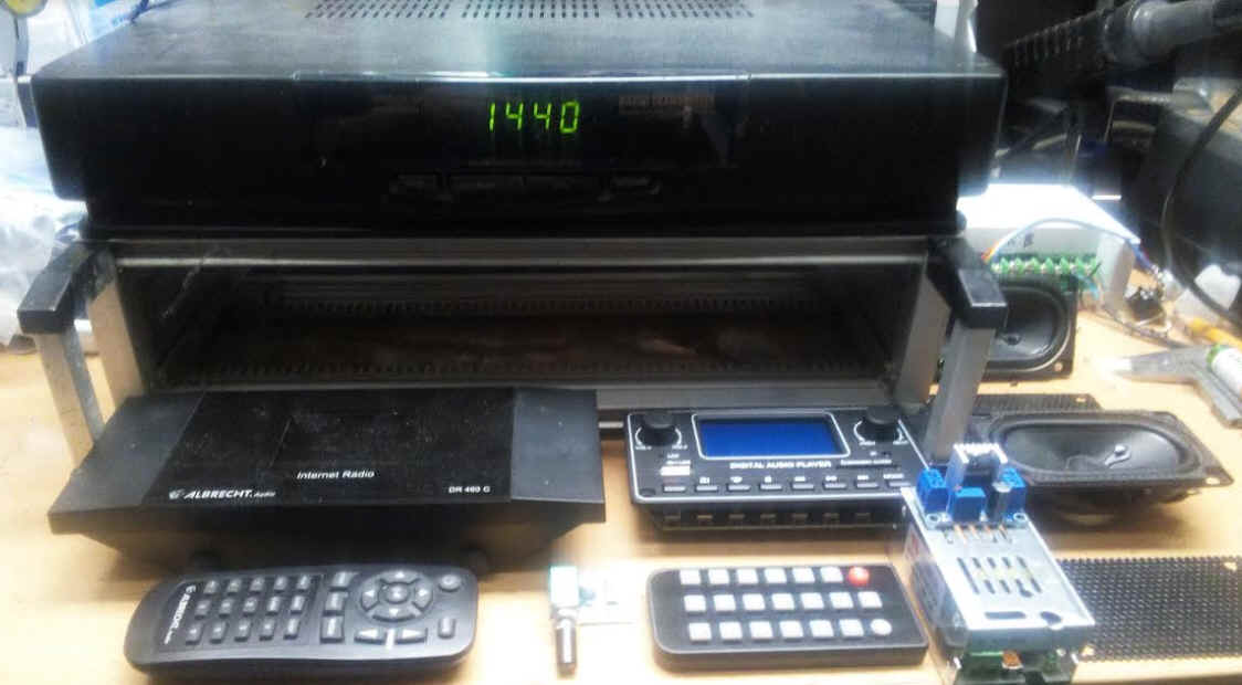 Na DV som pripravil stavebnicu, rovnaké sú aj na tri vysielače SV.(jeden z nich je rádio Dismuke a karta má obsah Synkopický orchester a Františka Krištofa Veselého) Srdce je Internetový tuner Albrecht DR 460C a MP3 prehrávač s FM rádiom dokonca s bluetooth 5.Mp3 má kapacitu 32GB. Mini almes skrinka s výškou 70mm stála pár chechtákov. Rámik s červeným fitrom je výpredajový tovar z GME a presne sadne na 6-miestny displej. Použitý zdroj 12V/1A+5v s LM 317.Na odposluch kúpené malé reproduktorky aj s perforovanou mriežkou, tiež stáli iba pár chlpov. poháňa ich 2x3W -D zosilňovač, na meranie hĺbky modulácie je použitý maličký japonský uA. To čo tam pribudne je kompresor dynamiky s obvodom SSM 2166P. Na nostalgy rádio Luxembourg je pripravený iný kaliber. Tam už je hotový model TH 5.0, takže som sa zameral na prehrávač a jeho vlastnosti. To čo pripomína trochu Laxík je stanica Hits Radio the 50s, 60s Hits´. Šlape to v MP3 128Kbps.je to niekde zo štátu Washington, mesto Washington.Čo sa týka nahrávok priamo z vinylov to práve chcem previesť do formátu WAV. na tú kapacitu je to 2133 skladieb. .Či mi to budete veriť alebo nie , odskúšal som si to cez PC, starý winamp vysielač TH5 naladený na 1440kHz, tuner Technics, polský zosilňovač,WS440 a equalizér Siemens 9-pásmový a štvorpásmové bedne ILA. prehrával som od R.Stewarta Stay with Me. raz cez WAV a potom Mp3 44.1kHz Potom bol posluch na prijímači Stradivari 3 a Variace, rozdiel bol badateľný napriek tomu že to boli stredné vlny.