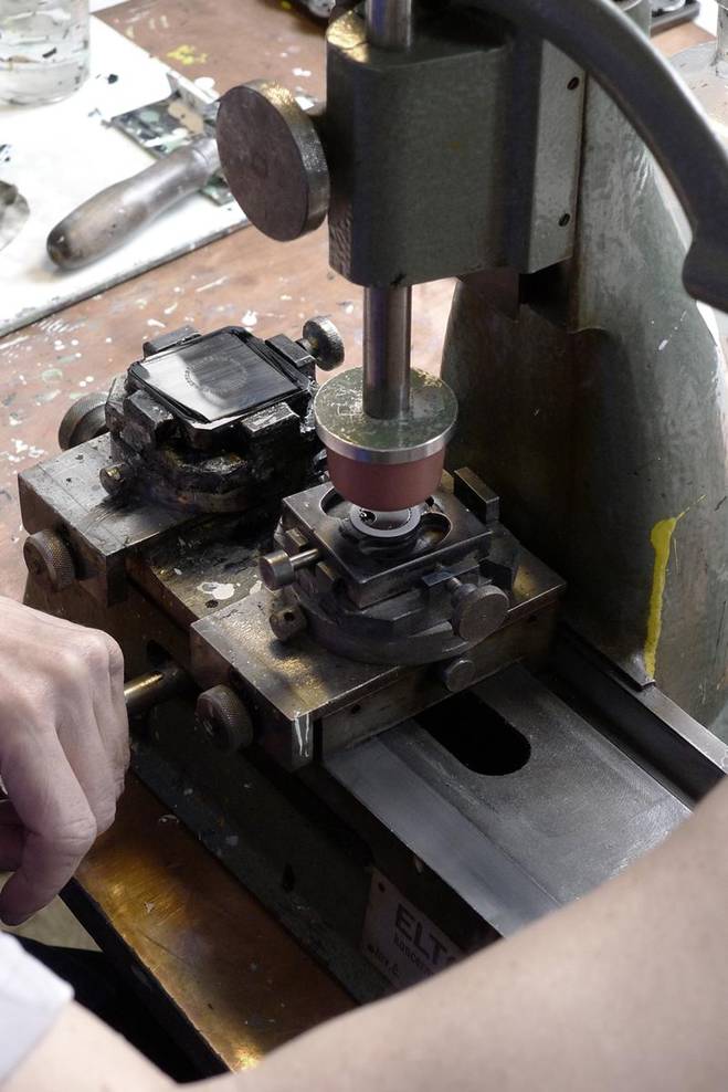 zdravím Tě! Před nedávnem se kdosi ptal na "vzkazovníku" na tamponový tisk. Mám pocit že dotaz jsi vložil Ty. No a já při přebírání svojí databáze narazil na obrázek toho zařízení, kterým se tiskly čísla na číselníky hodinek "PRIM". Já su vyučený hodinář. Učil jsem se mimo praxi i v hodinářské škola v Novém Městě nad Metují. Tím pádem jsem mnohokrát prošel fabrikou na hodinky a tamponový tisk viděl na vlastní oči živě. Tahle technika ovšem asi nelze dělat na koleně doma. Tampon z nějaké gelové hmoty by se snad dal udělat. Ovšem matrice na kterou se nanáší barva se musí vygravírovat do kovu - tam ji měli ocelovou. A musí být vyleštěná. Tento způsob tisku je vhodný především pro malé předměty. Pro nás jako rádiohistoriky připadá v úvahu spíš sítotisk. Myslím že by byl velice vhodný na výrobu replik stupnic. Ale stupnicu tamponovým tiskem určitě nevytiskneš! Tolik co vím o různých způsobech tisku vhodných či nevhodných pro nás. Ještě přikládám obrázek toho zařízení kterým se tiskly čísla na číselníky. Obrázek bys mohl vylepit na vzkazovník s poznámkou o co jde.