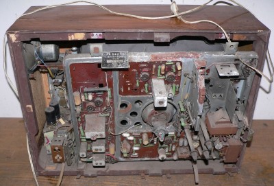 A tady je to torzo 4001. Jako celek je to podle mne neperspektivní. Navíc jak je na první pohled vidno, prošlo to (jako většina) úpravou na jinou obrazovku, takže i VN je nepůvodní. Součástí je i doosazovaný anténní předzesilovač se dvěma 6F32.