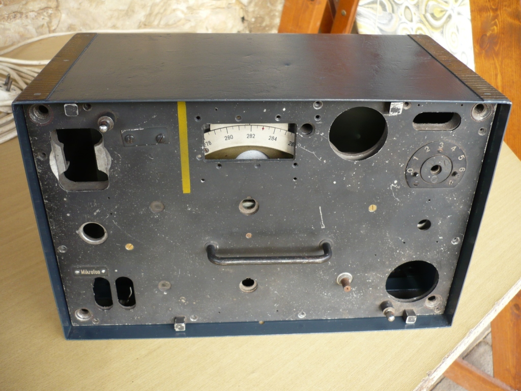 Nabízím výměnou čelní panel s ladicím převodem a skříň německého tankového vysílače 10W. S. c za skříň přijímače Torn. E. b. Do skříně pasuje i přijímač Ukw. E. e.