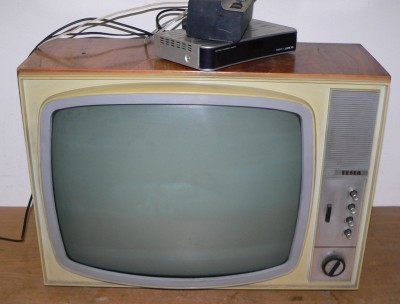 TV je provozní v původním stavu, s trochu slabší obrazovkou a myslím že i se slabší vstupní citlivostí. Včetně interního UHF konertoru s pevným laděním, nevím jestli je funkční - bohužel jsem nezjistil z jakého kanálu na jaký. Pak je tam myslím nelinearita ve svislém směru (ale to je to nejmenší). Drobné oděrky bedýnce, ulomené příchytky panelu s anténími zdířkami.