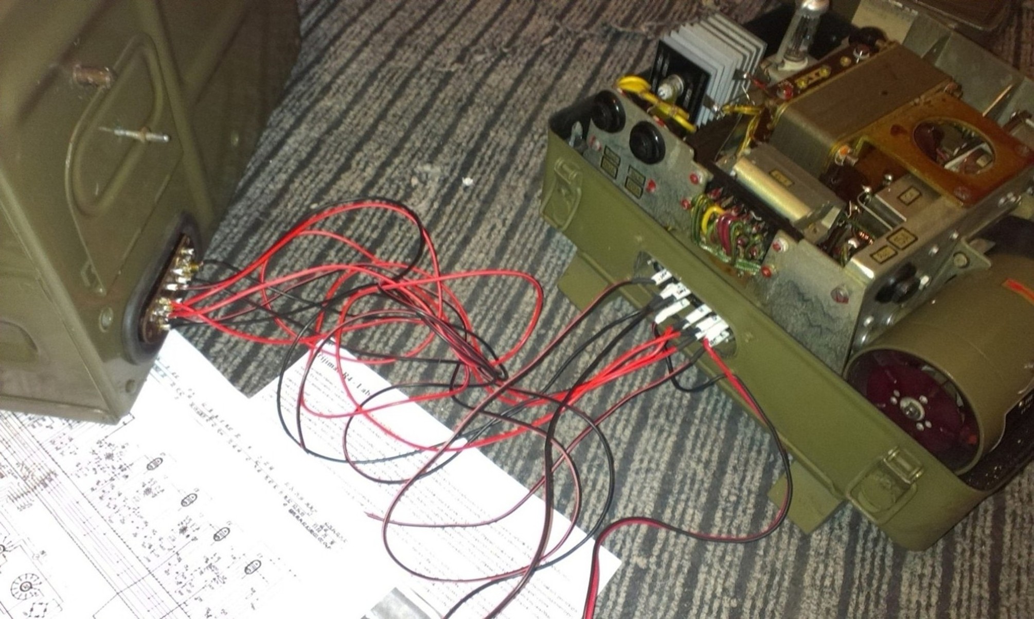 Z té první R4 se jen zakouřilo..... Jak sem to pak prokoukl důkladněji tak někdo dost bastlil už v prostorách hned za konektorem. Po připojení druhé R2 se zdá že to šlape. Po otočení do polohy pohotovost světýlko svítí a kontrolka udává žhavení OK. Po pootočení do další polohy se rozběhne měnič. Ve sluchátcích ale více méně ticho. Při vypnutí v nich praskne.