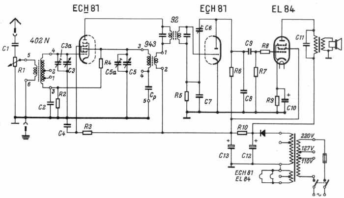 Opět musím konstatovat, že moje úvahy se ubírají naprosto stejným směrem. Mám zkušenost, že ani "plnohodnotný" superhet nemá dnes přebytek citlivosti ani výkonu, zvlášť když jsou elektronky opotřebované a jejich katody ztratily velkou část emisní schopnosti. Jakou to má mezifrekvenci, netuším, paralelní kondy jsou 100 pF. Pomohlo by, kdyby někde poznal tu cívkovou soupravu. Ještě jsem se to nepokoušel zapnout, musím napřed odstranit hrubé závady a najít nějaké malé výstupní trafo.