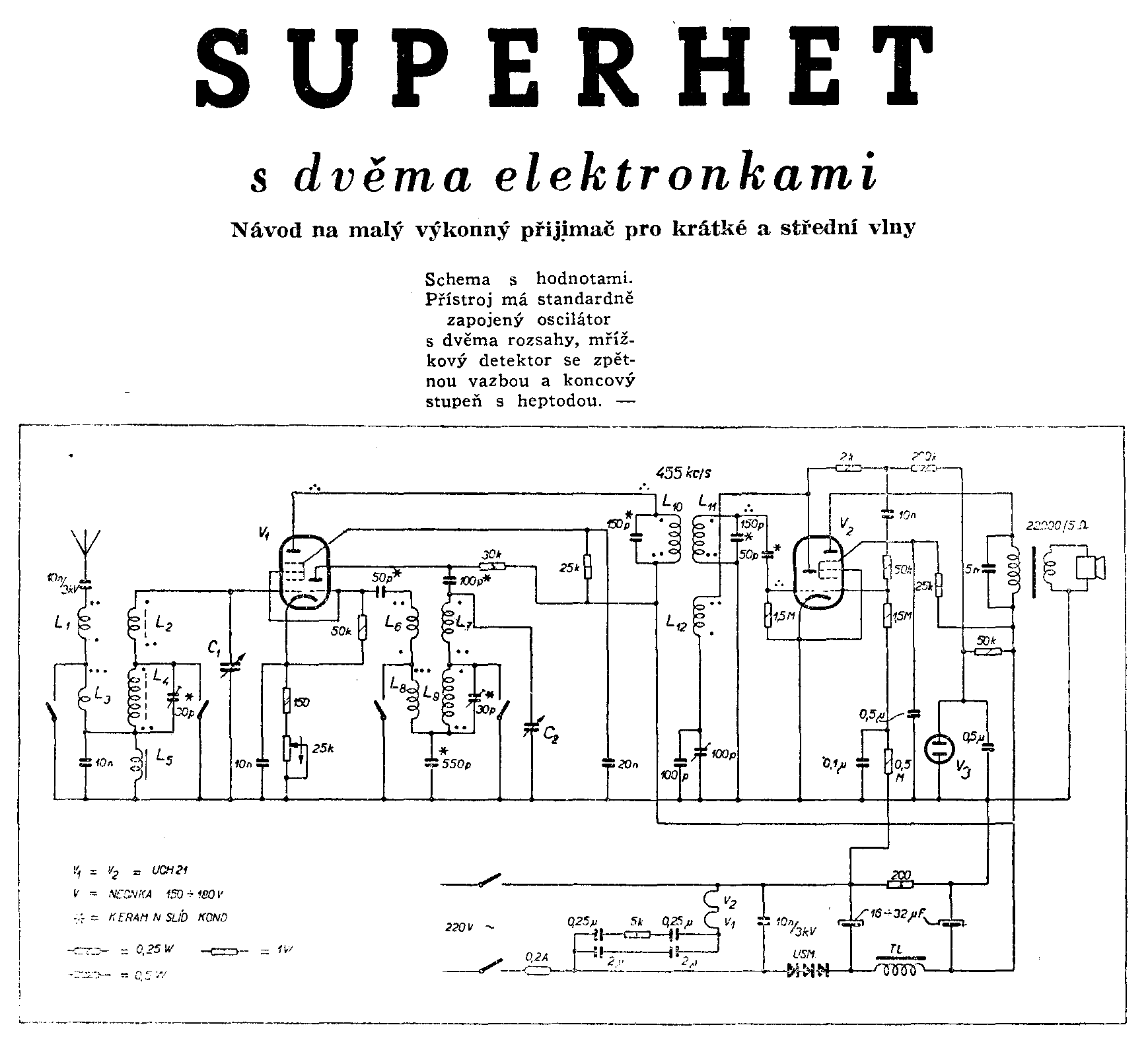 Já jsem porovnával i tu verzi superhetu s těmi dvěma ECH21 protože ji sám vlastním, ale to mně připadlo ještě méně podobné než ta dvojka. Nějaké schéma s UCH vypadá takle. Já ji mám ale také s ECH nacpané v té malé sonoretě.