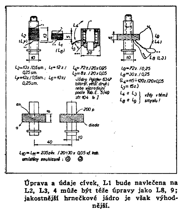 Takže pro celodenním pátrání si myslím že by to mělo být tohleto. V původním pramenu uvádějí mezifrekvenční kmitočet 454 kHz, ale jestli to bude 450 nebo 460 je vcelku jedno, k této frekvenci se donastaví ten padingový kondenzátor. K vstupním cívkám a také mezifrekvenci jsou tyto pokyny.