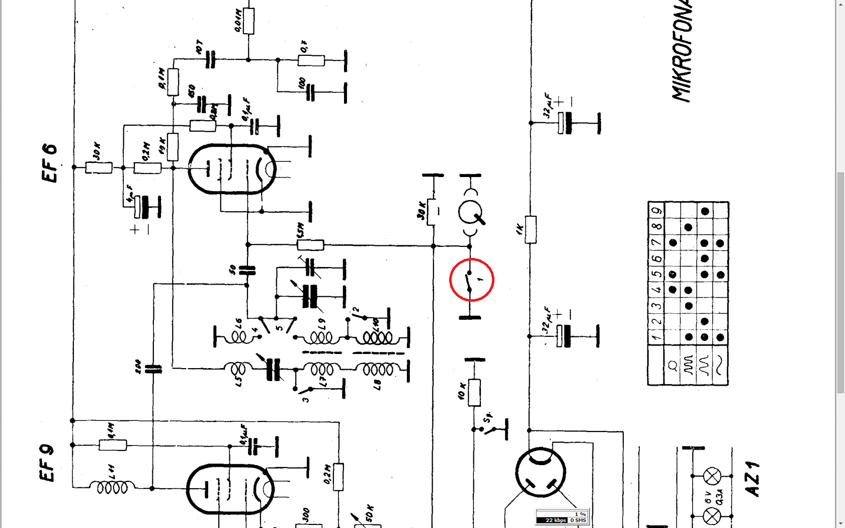 Napětí na ellytech je 270V a za odporem 230V, kolísá to v rozmezí 2V. Na katodě EL3 je okolo 3V, na anodě EF6 to napětí kolísá od zhruba 110V do 130V, mění se v závislosti na zvuku.