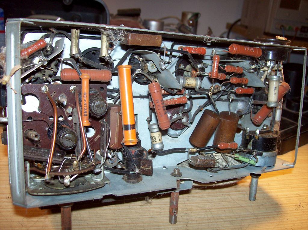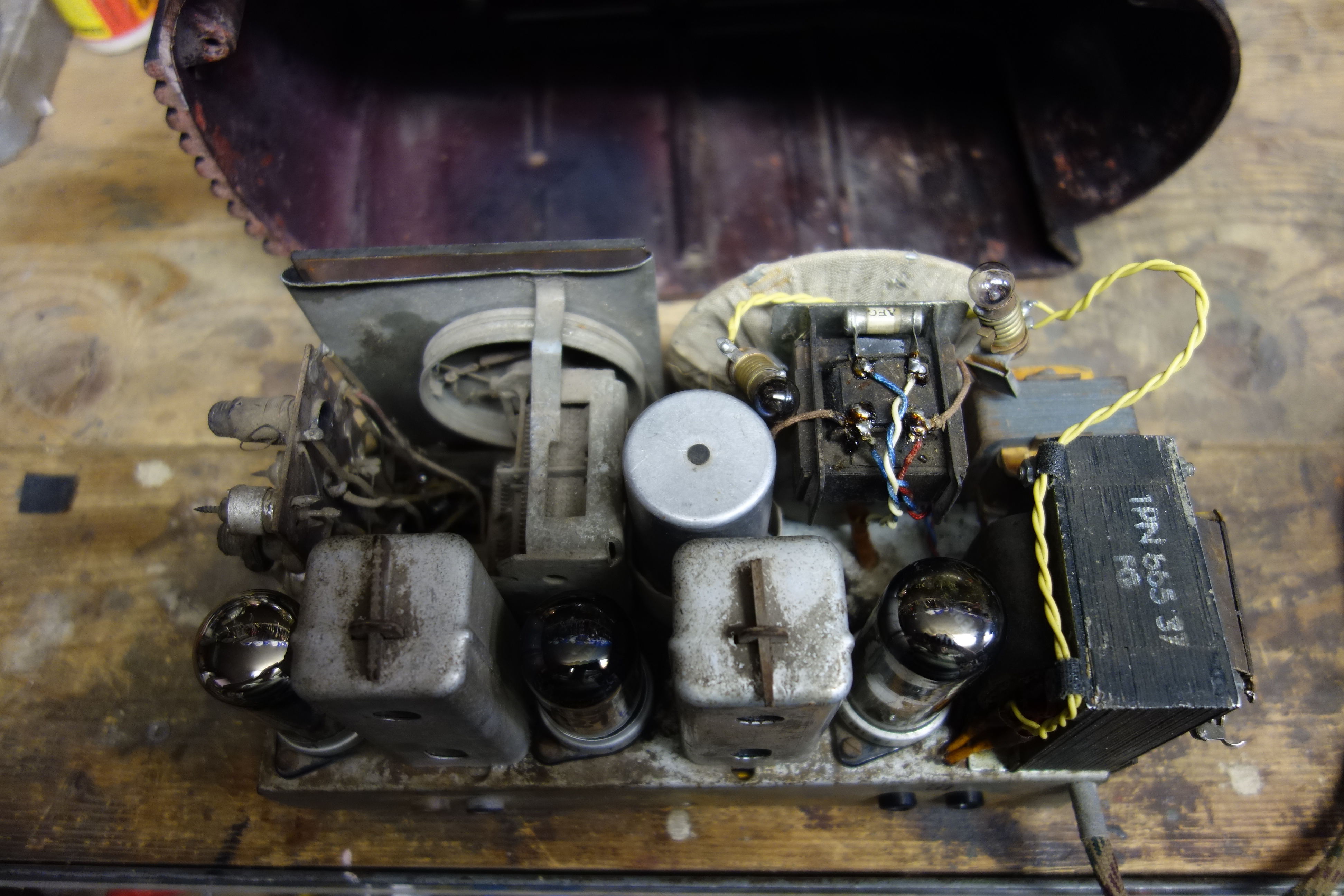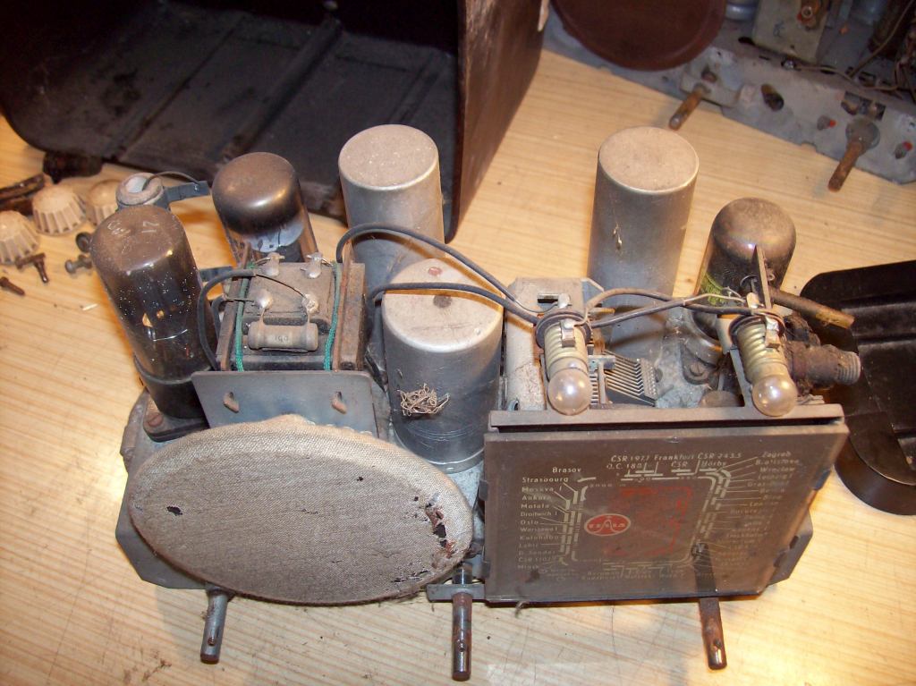 Skříňka talismanská, a uvnitř se nacházelo chassis zjevně individuální výroby. Bakelit skříňky byl rozbitý a kdosi tu skříňku zevnitř vyspravil plechovou výztuhou uchycenou prošroubováním několika zapuštěnými šrouby M4.