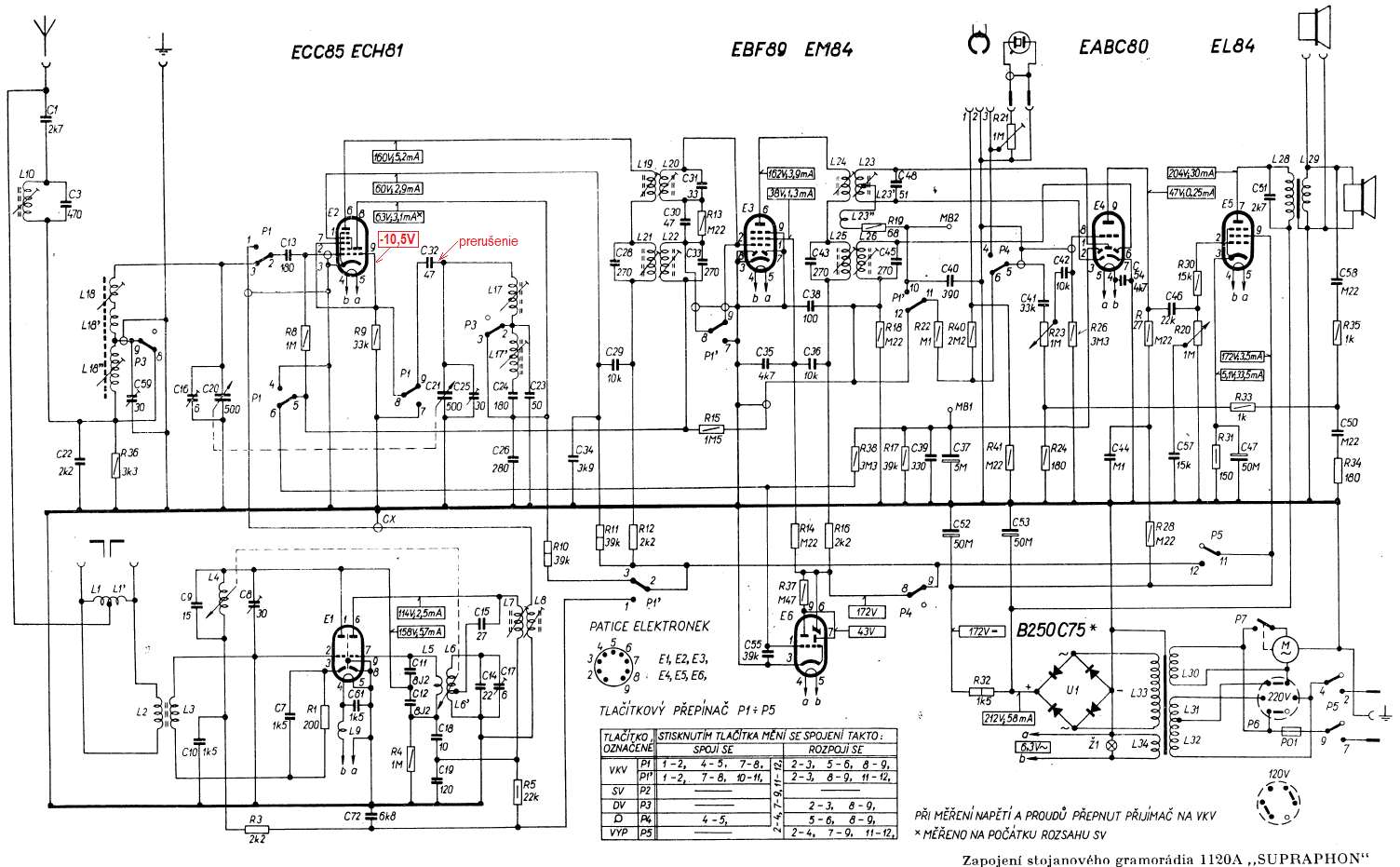 Protože E2 a vše další má fungovat jak pro SV, DV tak i pro VKV a to VKV "nějak hraje" , měla by být vada v obvodech mezi g1 E2 a anténou , pokud funguje oscilátor na SV,DV .Tak třeba zkrat v ladícím kondu, C13 bez kapacity (mf 10,7 přes pár pF proleze , SV,DV moc ne) . Nebo cívky- utržené vývody pod kryty , nějaký zkrat atd. atd. , možností je milion. Nejlepší po kontrole funkce oscilátoru ( stačí na mřížce triody naměřit digitálem přes