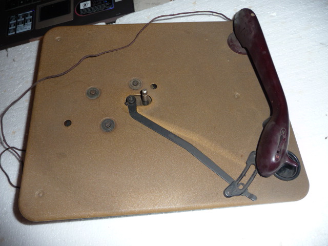 Ono to spíš bude posazeno obráceně,tedy širokým koncem nahoru ke gramu.Dneska jsem dotáhl gramo, doufám, že to je ono,díry v desce sedí.A když prohlížím pod lupou dosedací plošky na šasí grama,vypadá to na otisk pružiny na silnějším konci.No, budu pátrat, jak to v té překližce bylo.To šasí bylo již vymontované