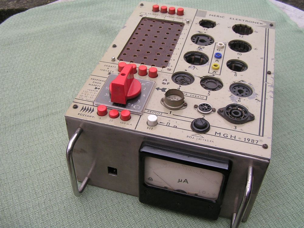 Před dávnem, v r. 1987, jsem si podle Amatérského rádia postavil vlastní měřič elektronek, toto jsou fotky z nedávné doby, pravda, je teď už trochu odrbaný, ale za ty roky udělal hodně dobré služby. Na třetím snímku je nejdůležitější součátka měřiče - tzv. křížový přepojovač. Pole se přepojuje zasouváním banánků... Popis stavby byl otištěn v Radiojournalu č. 3, zájemci mohu poslat sken stránek s popisem a schématem.