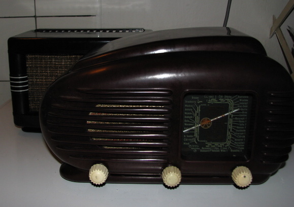 Osobně jsem též experimentoval s různými přípravky, než jsem došel k leštěnce TEMPO kterou jsem doporučil. Přijímače vyleštěné touto leštěnkou si totiž uchovávají svůj vysoký lesk po mnoho let a hlavní věc je, že povrch na sebe neváže prach. Prach který na přijímač časem sedne, po povrchu klouže, takže se dá utřít suchým hadrem. Na špatně vyfoceném obrázku jsou vyleštěné přijímače po sedmi letech. Leštění s TEMPEM je však věc dost pracná, možná, že by si práci šlo ulehčit elektrickou leštičkou na autolaky. S tou dosud nemám zkušenost, vlastním sice hadrovku na leštění hliníku, ale ta má moc velkou obvodovou rychlost a bakelit se při sebemenší neopatrnosti spálí.