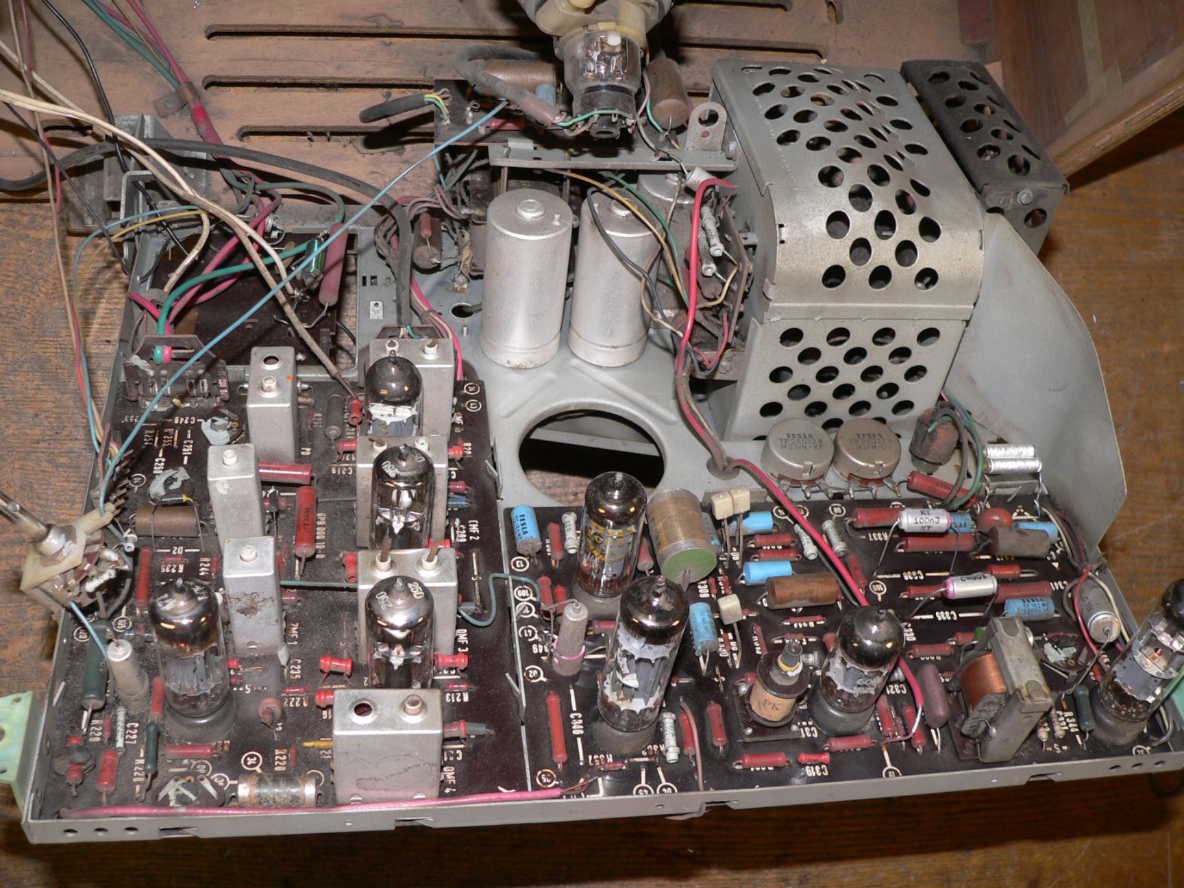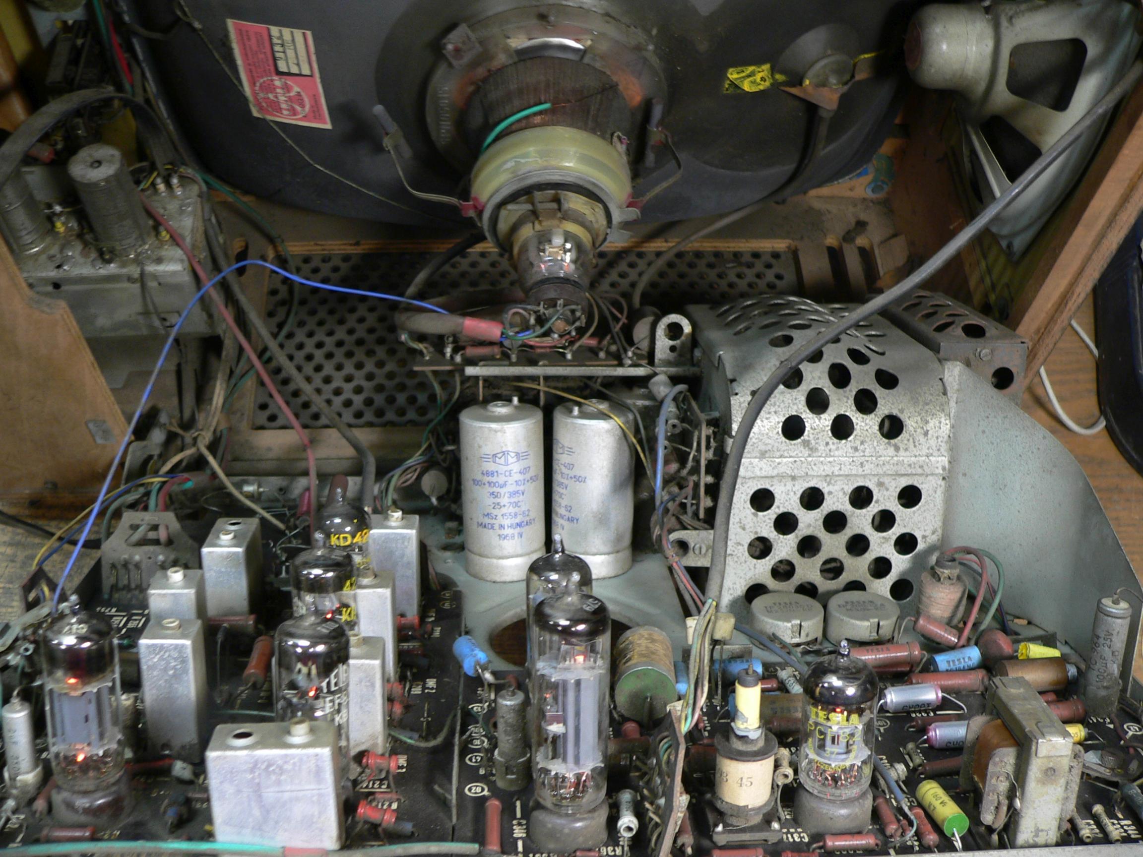 Co se týká tohoto konkrétního kousku, vyniká naprosto perfektní obrazovkou, jak po stránce emisní, tak po stránce ostrosti. Nemá originální síťovou šňůru, u vypínače nevodí jeden kontakt, potenciometry potřebují trochu prostříknout. Dobová úprava filtrace a obvyklé podžhavení PCL805 paralelním rezistorem. Schází hmatníky jemného ladění u obou pásem. Bedýnka také pěkná, jen na hranách jsou drobné oděrky.