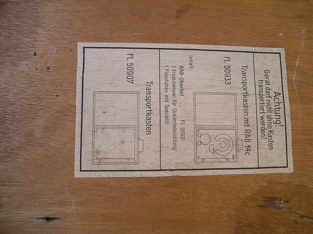 Nalezl jsem prázdnou dřevěnou krabici od zařízení, označeného jako RAB14c.