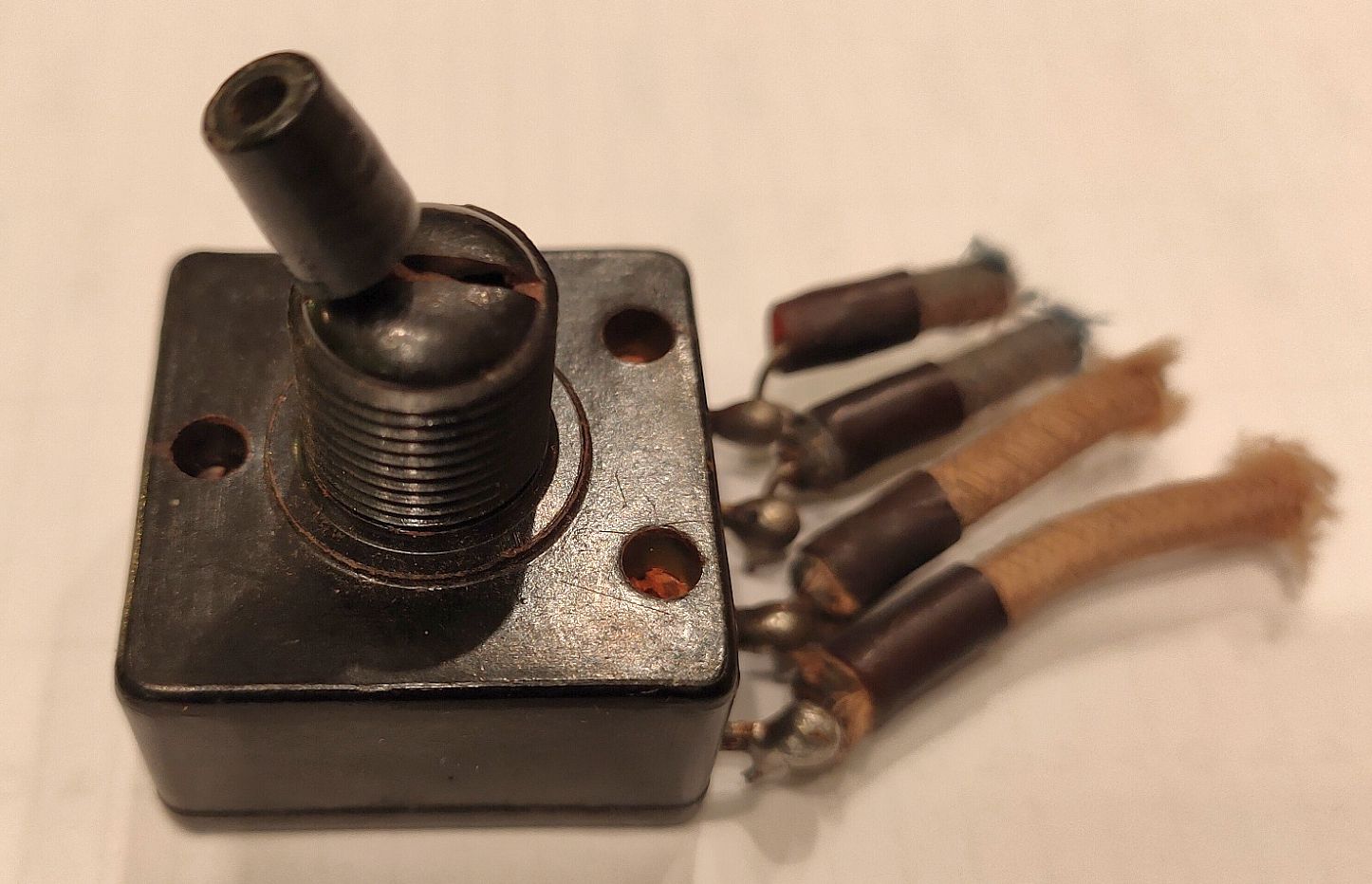 Všiml jsem si, že sháníte starý bakelitový dvojitý vypínač čtvercového tvaru. Včera jsem v dílně cosi hledal a v krabici netříděných náhradních dílů jsem podobný vypínač objevil, viz foto níže. Rozměry tělesa vypínače jsou: 28 x 28 x 16 mm. Tak mrkněte, zda by se Vám nehodil a v případě zájmu se mi ozvěte na mail: hakz@atlas.cz